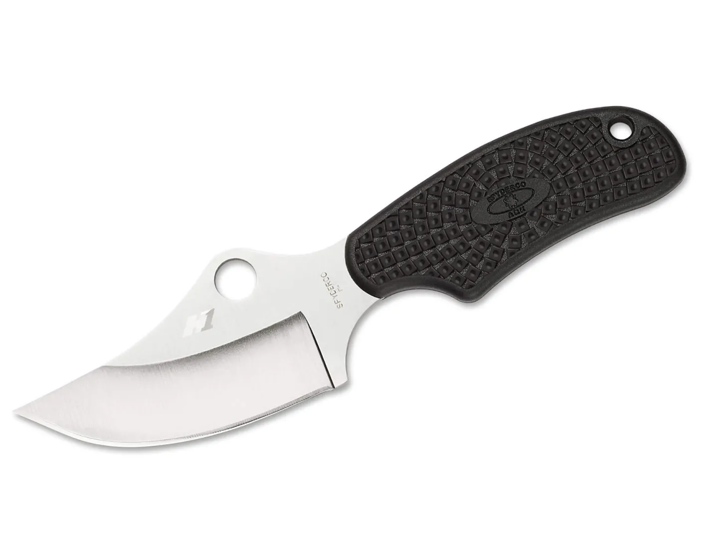 Das Spyderco ARK (die Abkürzung steht für „Always Ready Knife“) ist ein kleines, aber sehr potentes und vielseitiges Neck Knife. Das Design ist eine Kooperation von John Shirley und Sam Owens. Ungemein kompakt, aber mit ausgezeichneter Griffsicherheit ist das Messer auch für ausführlichere Arbeiten ungemein tauglich. Die Klinge des ARK besteht aus dem stickstofflegierten H1-Stahl und ist nahezu 100% korrosionsbeständig. Der glasfaserverstärkte Kunststoffgriff ist direkt auf den Erl aufgespritzt und liegt mit dem bidirektionalen Checkering unter sämtlichen Witterungsbedingungen sicher und komfortabel in der Hand. Es wird es in der Polymer- Scheide mit einer Kugelkette um den Hals getragen. Extrem dünn und leicht, macht sich das ARK kaum bemerkbar, bis man ein es benötigt.