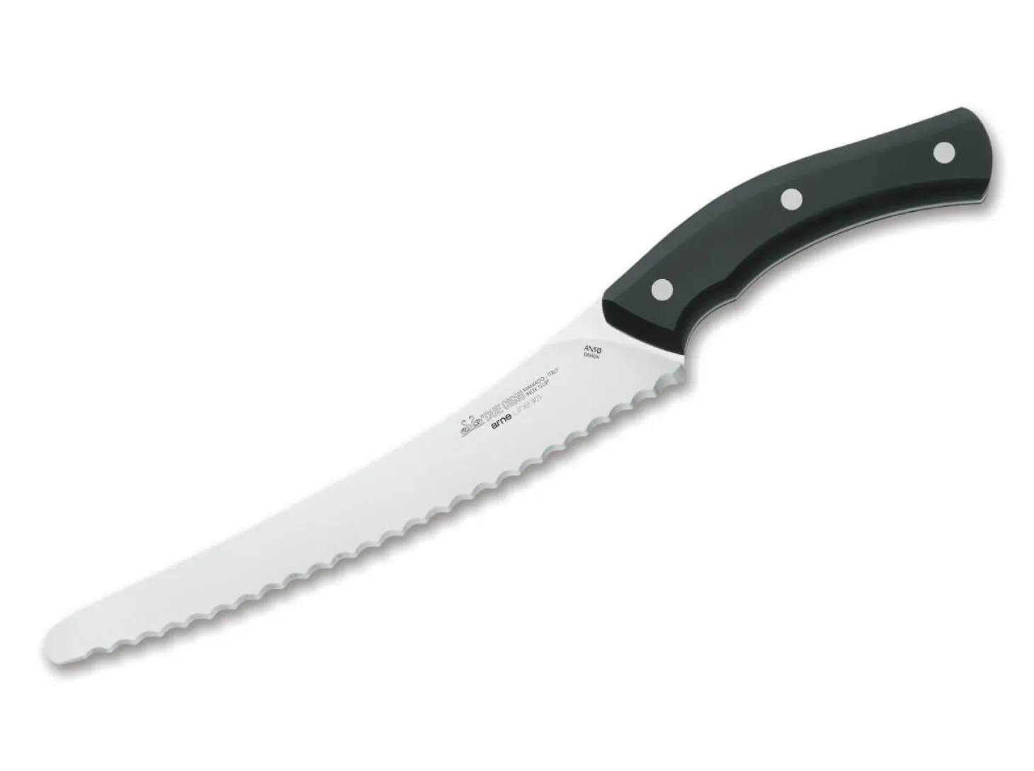 Die Küchenmesserserie Arne von Jens Ansø kombiniert gekonnt dänisches Design und italienische Lebensart. Die schön geschwungenen Griffe warten mit einer perfekten Ergonomie auf und erlauben langes ermüdungsfreies Arbeiten. Die Vollerl-Messer sind aus Sandvik 12C27 gefertigt und hier anstelle der Ziricoteholz-Beschalung mit robustem HPL-Kunststoff ausgestattet.
