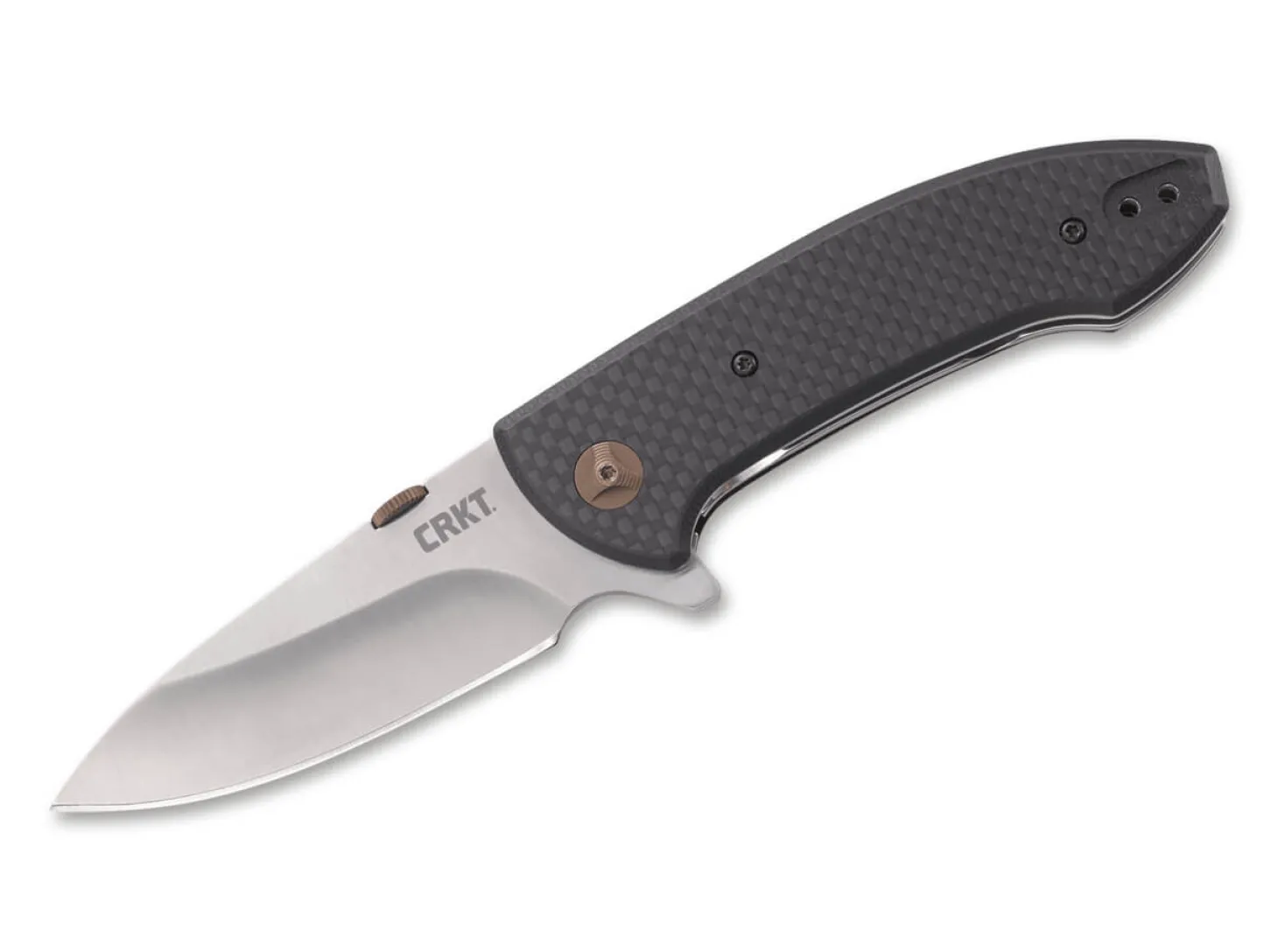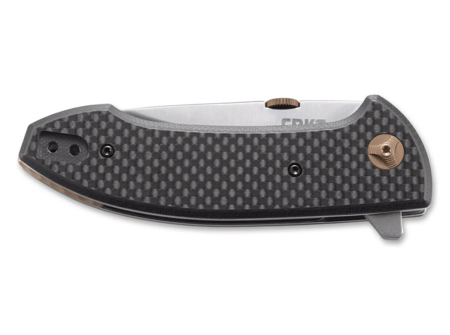 Das CRKT Avant von Eric Ochs aus Oregon ist wieder einmal ein Paradebeispiel dafür, wie gut ein minimalistisches Design ohne Schnörkel oder Schnickschnack funktioniert. Der sanft gerundete Griff des Taschenmessers liegt ausgezeichnet in der Hand, und die Öffnung der kugelgelagerten Klinge per Flipper oder Daumenscheibe ist ebenso praxisgerecht wie der umsetzbare Clip. Bronzefarbene Akzente setzen Clip, Klingenlager und die Daumenscheibe und erzeugen gemeinsam mit der Beschalung aus Kohlefaser ein edles Erscheinungsbild, das dennoch eher von Understatement zeugt. Gesichert wird die Klinge durch einen Linerlock. Mit umsetzbarem Clip (Tip-up/l-r).