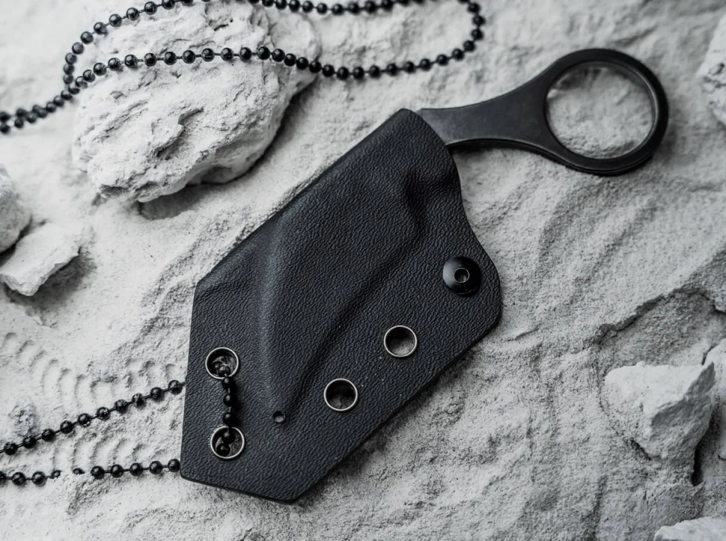 Der aufstrebende deutsche Messerdesigner Simon Frömel ist bei Böker kein Unbekannter. Bereits mit dem Böker Plus Rescue Kiridashi konnte er in der Vergangenheit für Furore sorgen. Sein nächster Coup ist gewiss: das Böker Plus Bad Moon ist ein feststehendes Karambit-Messer mit minimalistischer Anmutung und maximaler Funktionalität. Die Ganzstahlkonstruktion ist mit einer Hawkbill-Klinge aus äußerst schnitthaltigem D2 ausgestattet, deren Linien sich im geschwungenen Griff fortsetzen und dadurch eine sehr effiziente Nutzung garantieren. Garniert ist das gesamte Messer mit einem Dark-Stonewash-Finish. Typisch für diese Messerart ist der große Ring am Griffende, der eine sichere Handlage garantiert und auch als Fangriemenöse verwendet werden kann. Lieferung mit maßgeschneiderter Kydexscheide und Kugelkette zur Verwendung als Neck Knife.