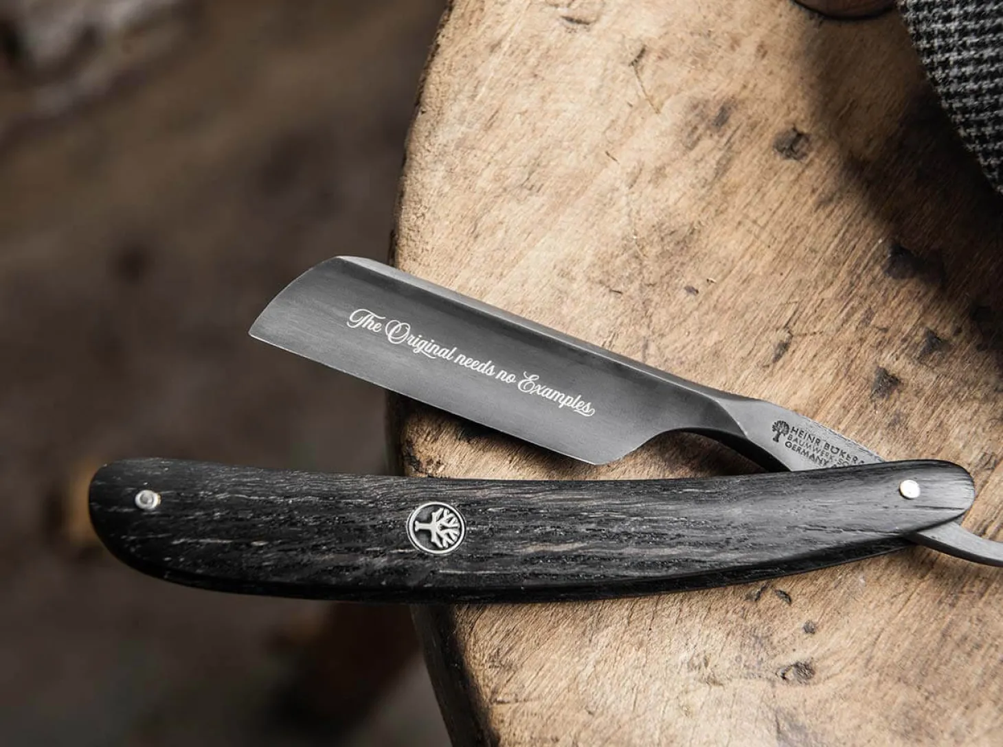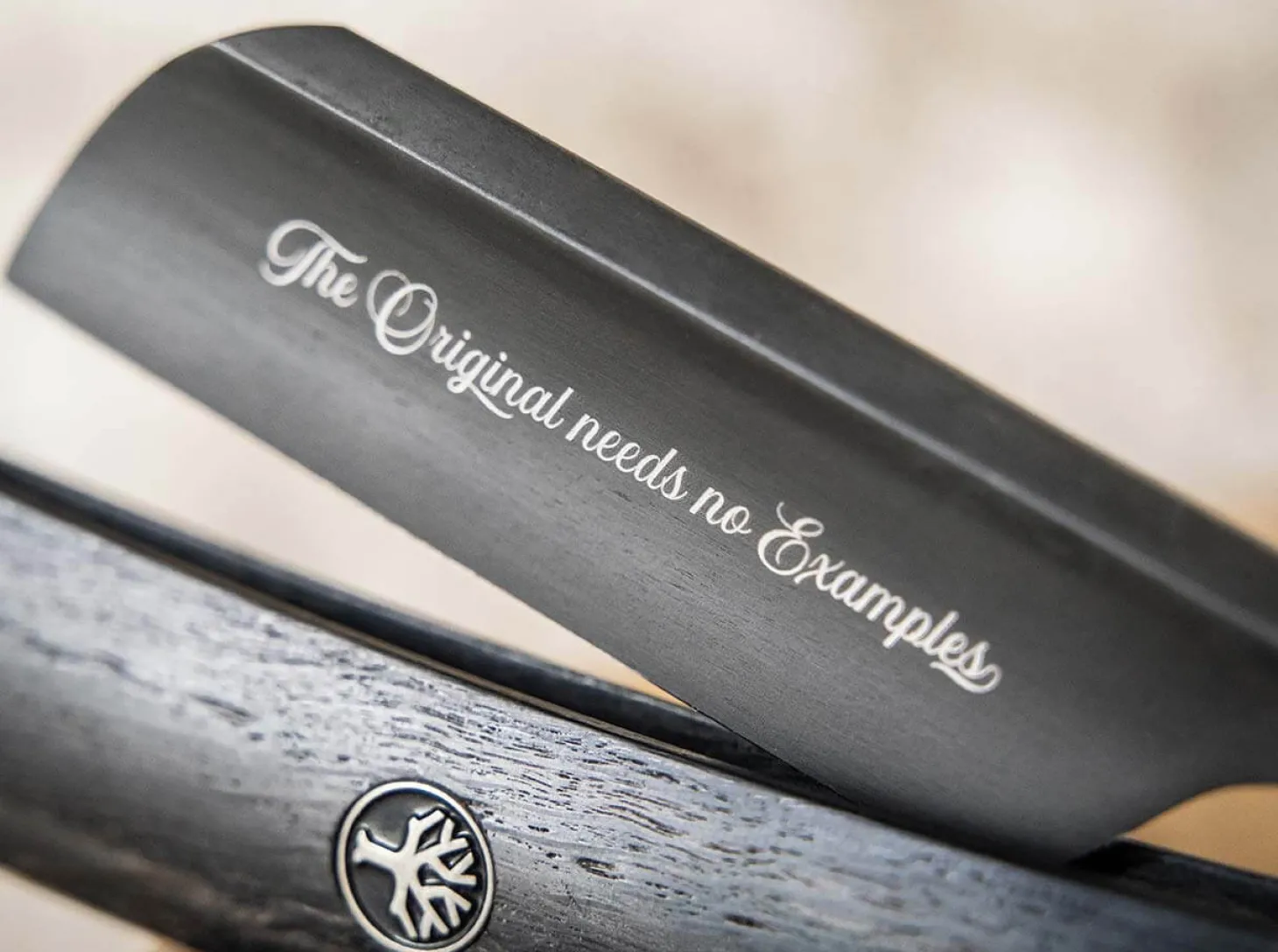 Der an Eleganz unübertroffene Elite-Erl mit spitzem Rücken aus traditionellem Silberstahl bildet die solide Basis für die stilvolle Komposition des Barbershop Cologne 2.0. Der Französische Kopf gibt der extrahohl mit Wall geschliffenen 6/8-Klinge eine kräftige und schwungvolle Erscheinung. Die Brünierung des Stahls zusammen mit dem Griff aus stabilisierter Mooreiche ermöglichen mit organischen Mitteln eine konsequente All-Black-Erscheinung. Der gravierte Schriftzug: „The Original needs no Examples“ spiegelt 1:1 Santos klassische Haltung zum Barbier-Handwerk wider. Mit authentischem Böker-Stempel im Klingengang, Echtheitszertifikat und historischer Verpackung. Handgefertigt in der Böker Manufaktur Solingen. Streng limitiert auf 99 Exemplare weltweit.