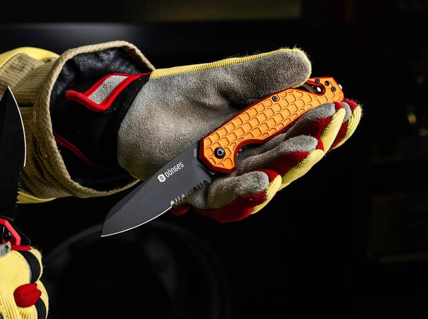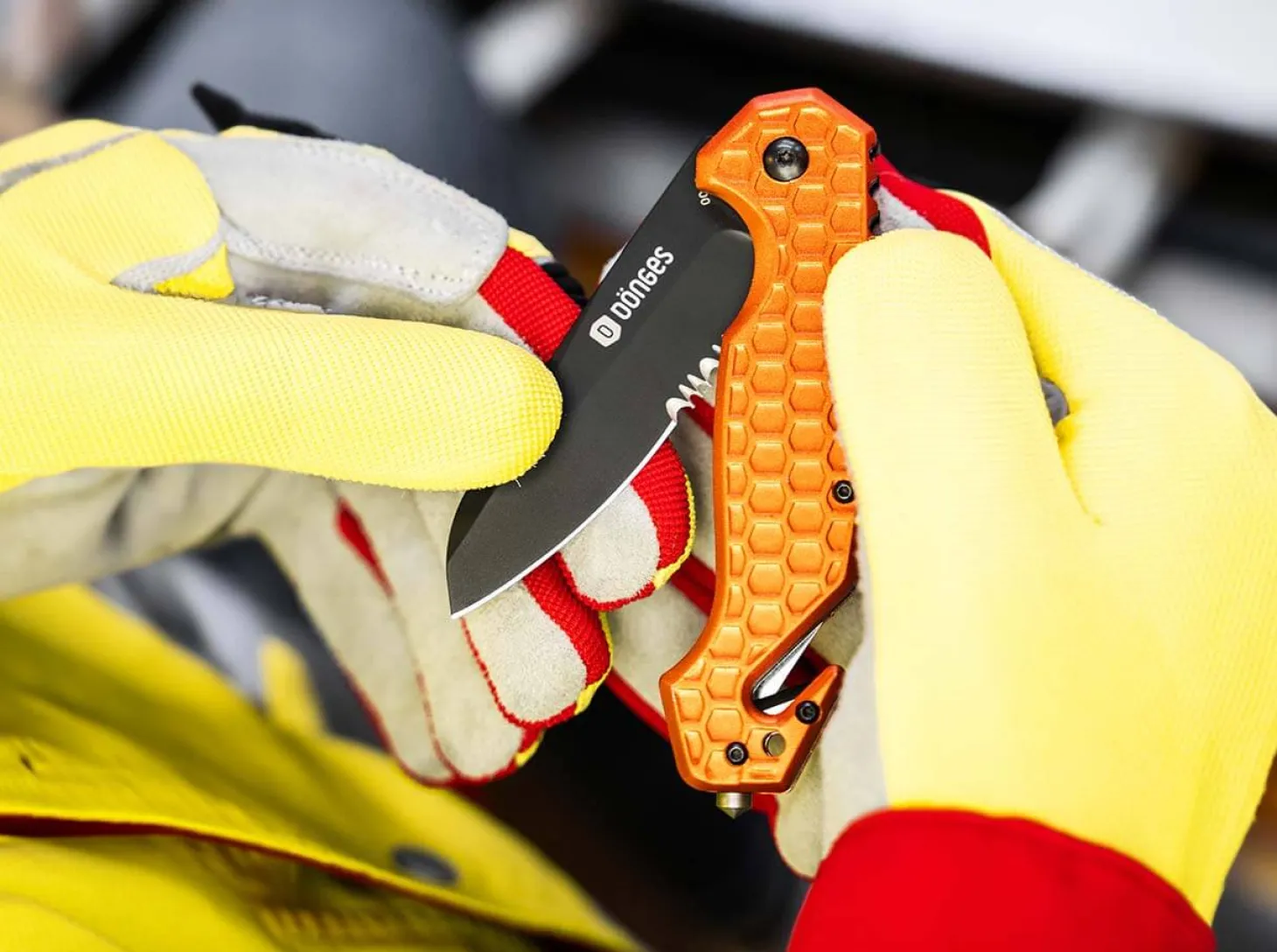 Die Dönges GmbH und Co. KG ist der führende Systemlieferant für Feuerwehr, Rettungsdienste, Behörden, Bundeswehr und Industrie mit Sitz im Herzen der deutschen Werkzeugproduktion, dem Bergischen Land.Die beiden benachbarten Unternehmen Dönges und Böker verbindet eine jahrzehntelange Zusammenarbeit. Erstmalig haben die Marktführer ihrer Branche ihre gesamte Kompetenz zusammengeschlossen, um gemeinsam eine von Grund auf neu entwickelte Rettungsmesser-Serie für den professionellen Anwender zu erschaffen.Dönges hat hierzu seine Erfahrung als führender Ausrüster, Böker seine über 150-jährige Erfahrung in der Entwicklung und Herstellung von Messern beigetragen.Das Ergebnis ist eine ausdifferenzierte Produktserie für die vier Aufgabenbereiche Brandbekämpfung, Rettung, Law Enforcement und Militär. Die Modellreihe ist in drei User-Levels gegliedert: Basic, Professional und Expert.Jedes einzelne der insgesamt 8 Rescue-Tools ist bis ins letzte Detail auf den einzelnen Anwender und seine speziellen Erfordernisse zugeschnitten.Die Dönges Basic Serie ist bewusst in einer moderaten und gängigen Taschenmessergröße gehalten. So kann das Messer im Alltag geführt werden und auch allgemeine Schneidaufgaben erledigen. Im Notfall ist es als professionelles Rettungswerkzeug so immer griffbereit im unvorhergesehenen Fall des Falles. Die starken gemeinsamen Merkmale aller drei Modelle sind die eloxierten Griffschalen aus Flugzeugaluminium 6061 mit griffiger Dönges-Wabenstruktur, Klingen aus zähem rostfreiem Edelstahl 440A mit bissiger halber Welle und kugelgelagerten Achsen, Glasbrecher, Gurtschneider sowie einem zuverlässigen Stahlclip zur Trageweise Tip-Down R.Die Sheepfoot-Klinge des Dönges Basic Rescue ist für die Arbeit des Rettungsdienstes optimiert. Sie ermöglicht das Zerschneiden von Bekleidung verletzter Personen mit minimiertem Verletzungsrisiko. Die Klinge verfügt über große freistehende Flanken, die ein bequemes Öffnen mit 2 Händen ermöglichen. Die Eloxierung der 6061-Aluminium-Griffschalen ist in SAR-Orange gehalten.