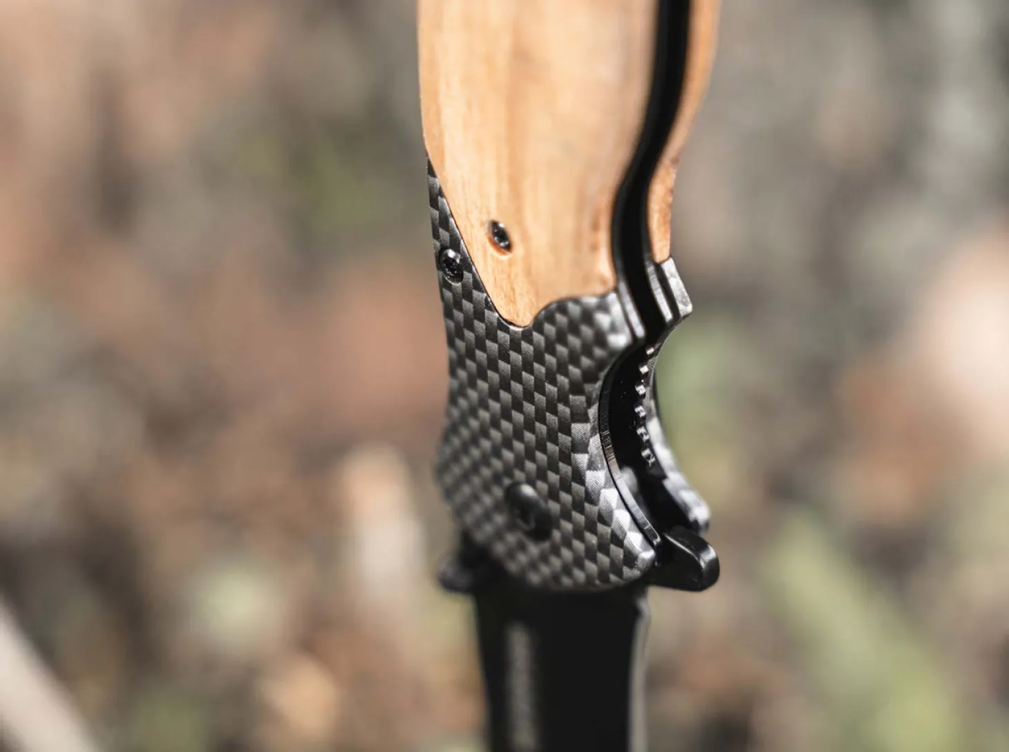 Ein Taschenmesser-Paket, wie es umfassender kaum ausgestattet sein könnte. Das Magnum Blomkvist vereint mit Hauptklinge, Glasbrecher und Gurtschneider drei Funktionen und wird mit einer praktischen Gürteltasche aus Nylon ausgeliefert, in der in einem abgetrennten Fach zusätzlich noch ein Schleifstein untergebracht ist. Die titanbeschichtete Klinge aus rostfreiem 440A kann sowohl per Flipper als auch per Daumenpin geöffnet werden und wird von einem stabilen Linerlock gesichert. Die Griffschalen aus mediterranem Olivenholz verleihen dem Messer eine angenehm warme und natürliche Ausstrahlung und setzen sich deutlich von den modernen Backen in Carbon-Optik ab. Das hochwertige Gürteletui kann horizontal oder vertikal am Gürtel getragen werden. Für erweiterte Trageoptionen und mehr Flexibilität ist das vielseitige Blomkvist zudem mit einem Deep-Carry-Clip (Tip-down) ausgestattet.