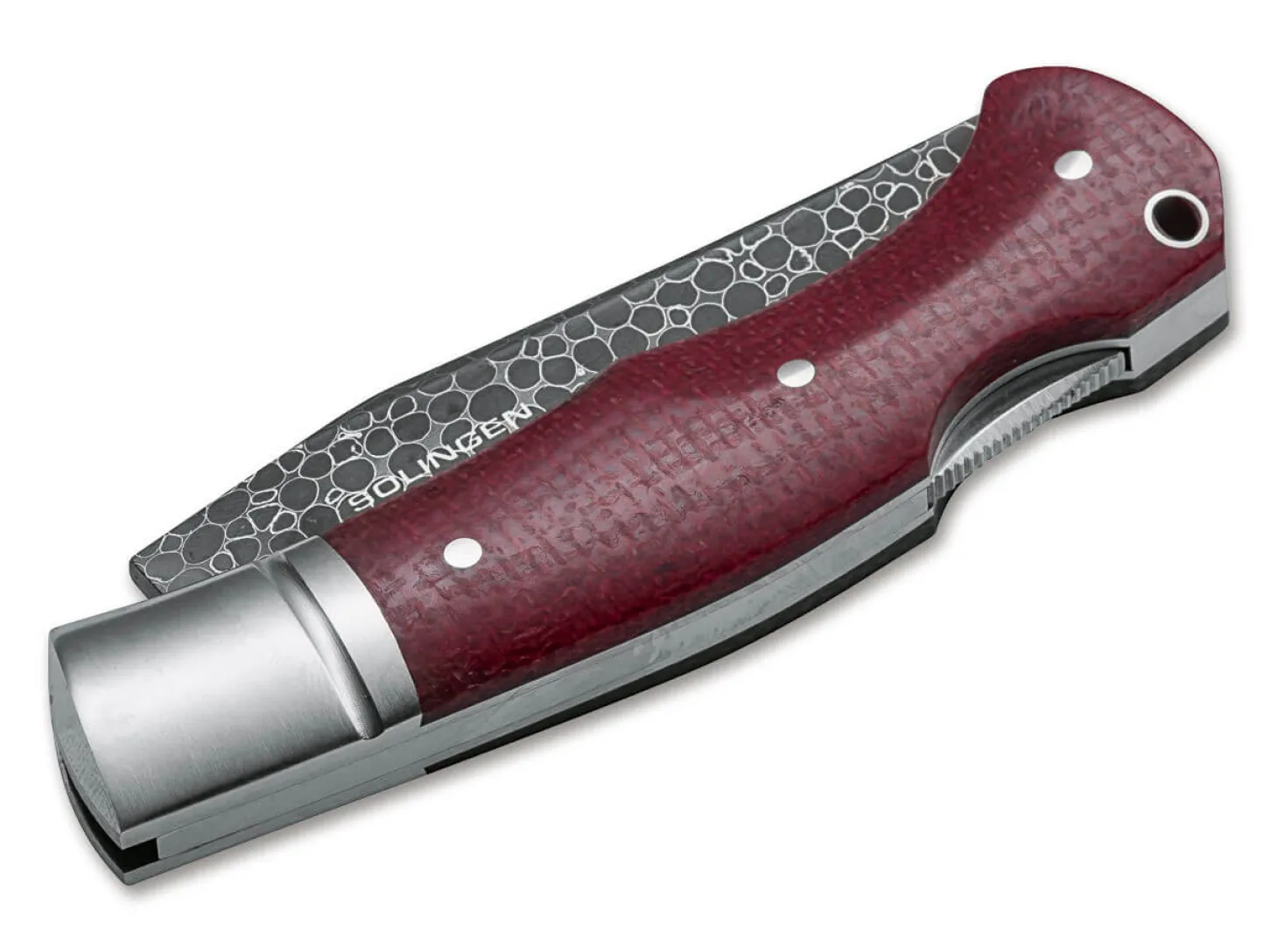 Das von Raphaël Durand aus Thiers entworfene Böker Boxer erfreut sich als klassisches Zweihandmesser überaus großer Beliebtheit. In dieser besonders edlen Variante ist das traditionelle Taschenmesser mit einer dunklen Klinge aus Dragonskin-Damast von Bertie Rietveld ausgestattet, der auf 58 HRC gehärtet wird. Der südafrikanische Custom-Messermacher gilt als erster Damastschmied des Landes und schmiedet bereits seit 1991 Hochleistungs-Damast mit außergewöhnlichen Mustern. Die Klinge wird von einem stabilen Backlock arretiert und ist mit einer großzügigen Fehlschärfe versehen. Die dekorativen Backen aus Edelstahl tragen die für Raphaël Durand typische Nut. Die Griffschalen werden aus poliertem, roten Jute Micarta gefertigt und liegen sehr angenehm in der Hand, die handliche Größe ist dabei der perfekte Kompromiss zwischen Taschentauglichkeit und Vielseitigkeit im Einsatz. Mit verstärkter Fangriemenöse. Handgefertigt in der Böker Messer-Manufaktur Solingen. Die Auslieferung erfolgt mit individueller Seriennummer in einem edlen Schwebedisplay mit Echtheitszertifikat.