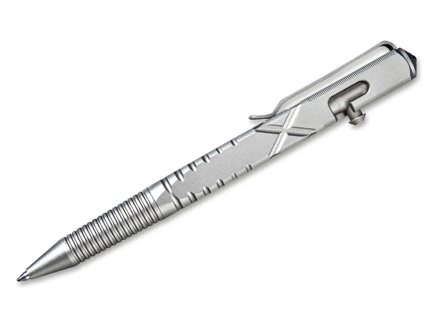 Hochwertiger Tactical-Pen aus hartanodisiertem Aluminium mit Bajonettmechanismus Die Keramikkugel am oberen Stiftende dient als Glasbrecher, und der Edelstahlclip gewährleistet problemloses Führen. Mit deutscher Mine (Schmidt P900).
