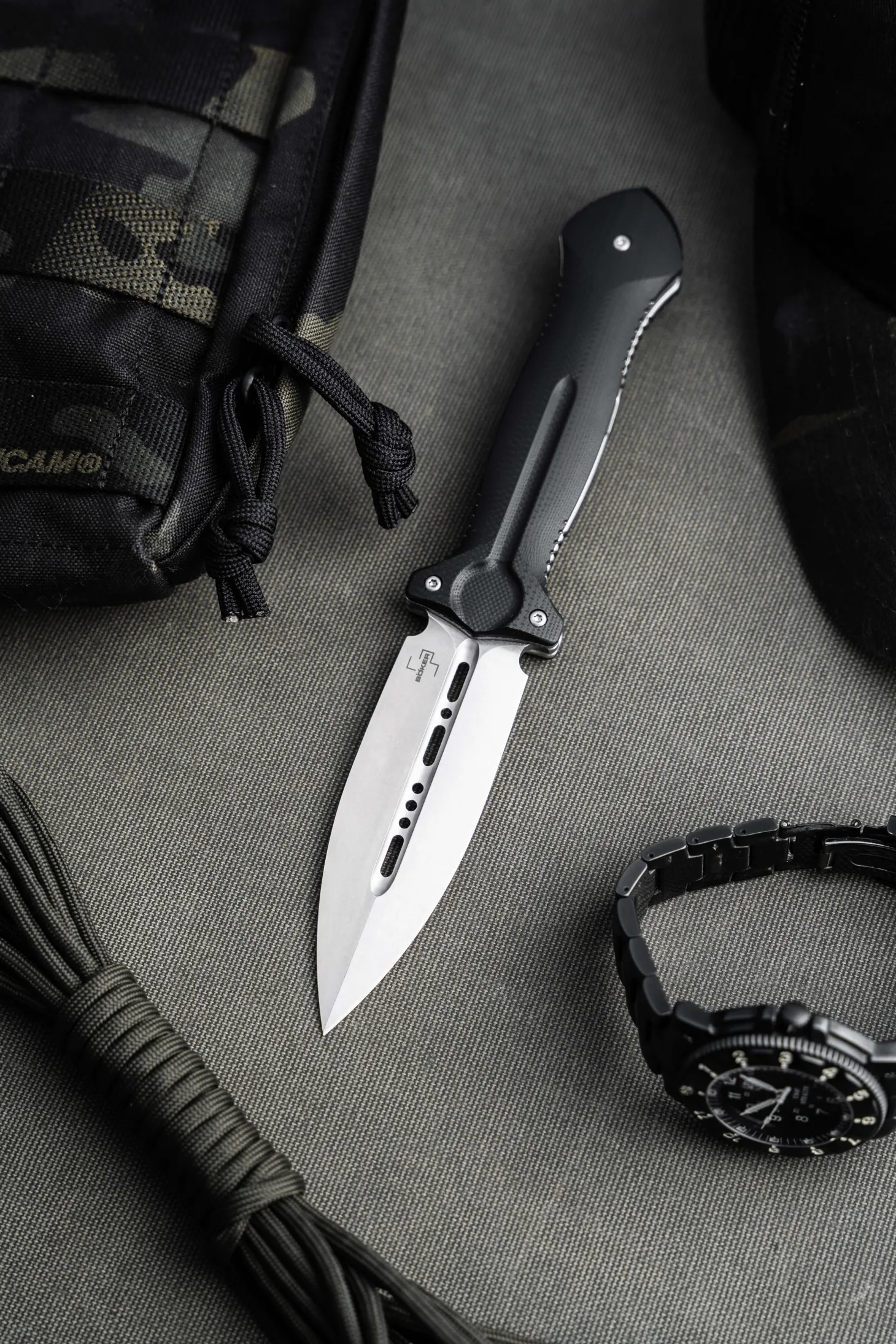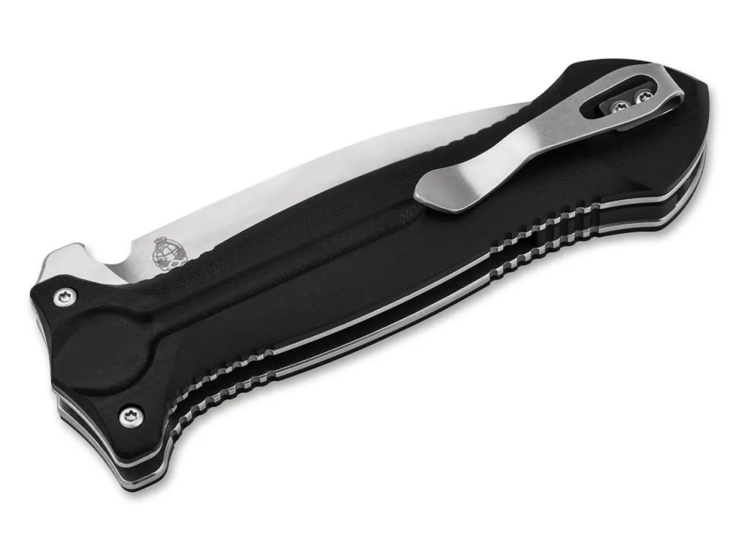 Your choice? The Cheus! – Alexey Ponomarev von Brutalica erleichtert die Entscheidung für das Messer der Wahl mit dem wuchtigen Böker Plus Cheus. In seiner Silhouette an einen taktischen Dolch erinnernd, kommt das Taschenmesser mit einer beeindruckenden Dynamik daher. Kugellagerung, einseitiger Schliff, Stonewash-Finish oder gewichtsreduzierende Durchbrüche in der Hohlkehle – die symmetrische Spearpoint-Klinge aus VG10 besticht mit Schärfe in jeglicher Hinsicht. Im geöffneten Zustand verschwindet der Flipper komplett im Griff für einen aufgeräumten Look. Die ergonomischen Griffschalen aus rutschfestem G10 sind mit zusätzlichen Riffelungen an Ober- und Unterseite versehen und garantieren sicheren Halt, während die mittige Vertiefung im Griff an die Hohlkehle der Klinge anknüpft. Formschön integriert sich der Liner-Lock, der die Klinge felsenfest arretiert – so bleibt selbst hartnäckigsten Schneidarbeiten keine andere Wahl. Mit Tip-Up Clip (r) und hochwertigem Nylon-Etui.
