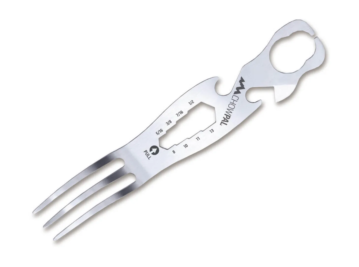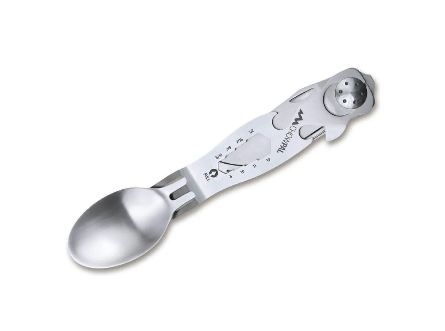 Das Chow Pal von Outdoor Edge fügt sich nahtlos ein in Reihe der immer durchdachten und unbedingt praxistauglichen Produkte aus der Ideenschmiede Outdoor Edge. Es ist mit seinen 68 Gramm nicht nur ungewöhnlich flach und leicht für ein vollständig mit Messer, Gabel und Löffel ausgestattetes Outdoor-Besteck. In die Gabel mit langen Zinken sind zusätzlich ein Sechskantschlüsselsatz mit vier Größen, ein Dosen- und ein Flaschenöffner integriert. Das Set aus amerikanischem 420J2-Edelstahl kann durch einen genialen Mechanismus platzminimierend ineinandergesteckt werden. Das Ganze kann hygienisch im mitgelieferten Nylonbeutel mit Kordelzug transportiert werden. Selbst Ultralight-Trekker geraten angesichts dieser Eckdaten in Versuchung, ihr Titan- oder Kunststoff-Besteck aus der Ausrüstung zu verbannen.