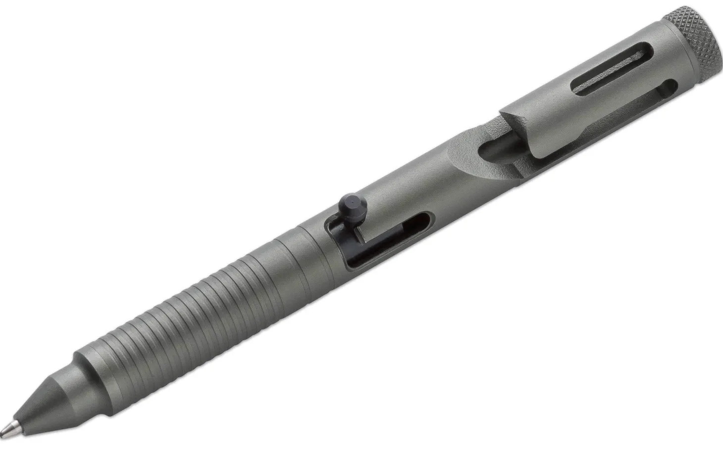 Der Böker Plus CID cal .45 ist ein Tactical Pen, der in Design und Technik neue Maßstäbe setzt. Rainer Wenning, der schon die Böker Plus Pocket-Sticks SO4PRO-K entwickelt hat, und der Messermacher Thomas Braunagel (BFK) haben ihn konzipiert. Revolutionär ist der Einsatz eines Bajonett-Mechanismus. Rein funktional erhöht die Bajonettmechanik den Bedienkomfort deutlich, da zum Schreibeinsatz weder eine Kappe abgeschraubt noch die Schreibmine herausgedreht werden muss.Ebenso schnell wie der klassische Druckknopf lässt sich der Bajonettschieber bedienen und gewährleistet im Einsatz als Tactical Pen einen absolut sicheren Griff, da der Daumen auf dem Stiftkopf sicher aufliegen kann. Mindestens genauso wichtig im zivilen Einsatz ist die garantierte Befriedigung des männlichen Spieltriebs durch die Betätigung des hochwertigen Bajonettverschlusses. Dem nervigen Klicken bei nervösen Nutzern von Plastikkugelschreiber können Sie nun den satten Klang des komplett aus Metall gefertigten Bajonettverschlusses entgegensetzen.Eine weitere, aufsehenerregende Spezifikation ist das Clip-Integrated-Design (CID). Es bietet den Vorteil der leichten Unterbringung in einer Tasche, ohne einen hervorstehenden Clip zu benötigen, der sich bei festem Zugreifen unangenehm in die Handfläche drücken könnte. Der nur minimal federnde Clip ist so bemessen, dass er zum Beispiel über der Naht einer normalen Jeanstasche oder Funktionshose einen angenehmen Zugwiderstand bietet. Der Körper des Tactical-Pen CID cal .45 ist aus hardcoat-anodisiertem Aluminium CNC-gefräst und verbindet mit seiner unaufdringlichen Struktur hochwertige Eleganz und Ergonomie.Diese Version mit überarbeiteter Mechanik ist kompatibel zur Lamy-Mine M-22, die problemlos in jedem Schreibwarengeschäft beschafft werden kann.