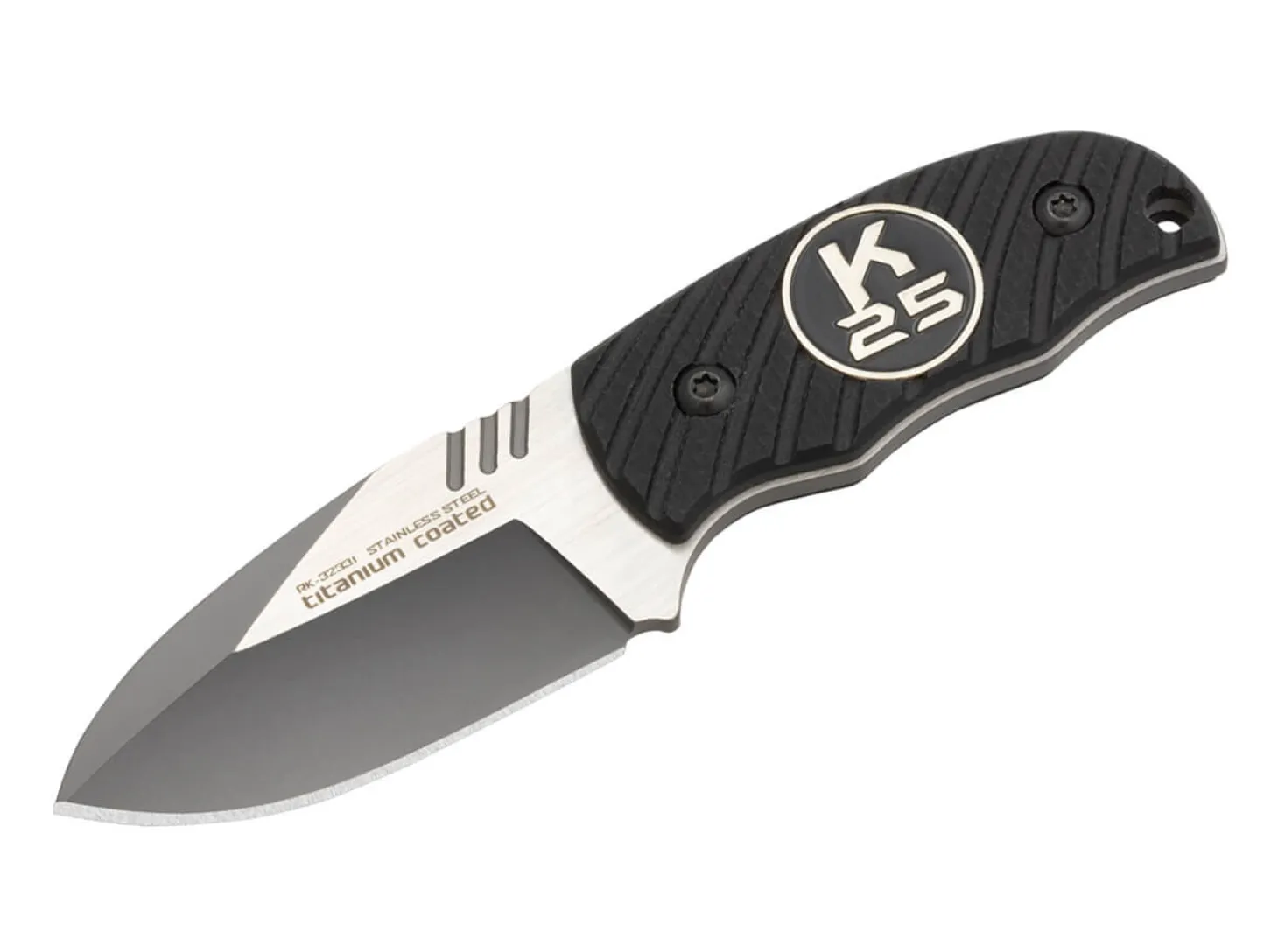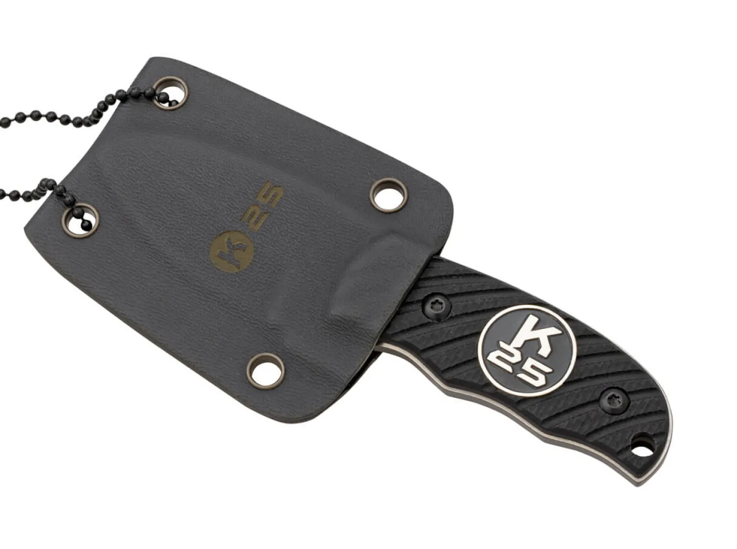 Das K25 Dakar ist ein kleines und handliches Messer, dass trotz der kompakten Dimensionen eine Menge Nutzwert bietet. Das Neck Knife ist mit einer 7Cr17MoV-Klinge und Griffschalen aus schwarzem G10 ausgestattet. Der ergonomisch geformte Griff ist mit einem großen K25 Logo und einer Fangriemenöse versehen. Lieferung mit passgenauer Kydex-Scheide und Kugelkette.