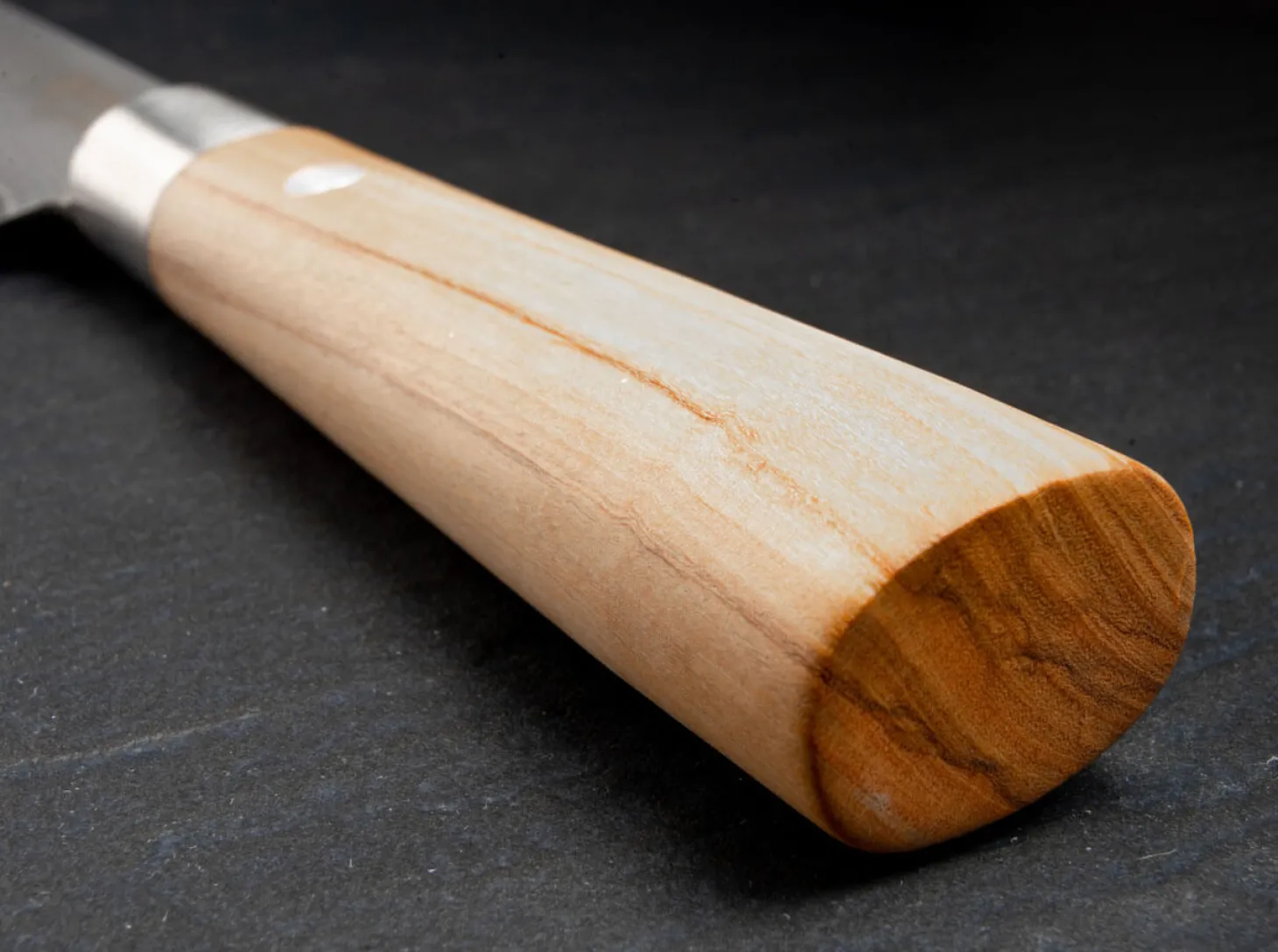Die Kochmesser-Serie Böker Damast Olive verbindet traditionell japanische Grifformen aus heimischen Olivenholz mit rasiermesserscharfen Klingen aus rostfreiem Damast mit 37 Lagen Stahl, die sich durch eine wunderschöne Maserung auszeichnen. Der extrem schnitthaltige Kern der Damastklinge besteht aus dem Hochleistungsstahl VG-10. Die spürbare Schärfe beim Schneiden ist atemberaubend und lässt das Kochen zum Erlebnis werden. Die japanische Bauweise des Messergriffs mit den fein mattierten Edelstahlzwingen gibt der Serie ihren besonderen Charakter.Nicht nur viele Spitzenköche schwören auf japanische Küchenmesser – auch bei ambitionierten Hobbyköchen werden sie immer beliebter. Die Vorzüge der Messer mit japanischen Griffen und dem traditionellen Aufbau aus Klinge mit Steckerl und Edelstahlzwinge liegen hierbei auf der Hand, denn empfindliche Lebensmittel lassen sich besonders schonend zerteilen und zubereiten. Beim Schneiden von Kräutern treten beispielsweise durch den sehr feinen Schnitt kaum ätherische Öle aus. Aromastoffe gehen so nicht verloren, und das unerwünschte Tränen der Augen beim Zwiebelschneiden kann ebenfalls vermieden werden. Die gefühlte Schärfe beim Schneiden ist atemberaubend und lässt das Kochen zum Erlebnis werden.Das Geheimnis der ungewöhnlichen Schärfe liegt im Material und dessen Bearbeitung. Die Klinge besteht aus 37 Lagen Damaststahl. Der rostträge Premium-Klingenstahl VG-10 der mittleren Schneidlage wird in Japan hergestellt und zeichnet sich durch einen hohen Härtegrad, Zähigkeit und eine homogene kristalline Struktur aus. Im direkten Vergleich der Schneidleistung mit einem Produkt eines etablierten Solinger Küchenmesserherstellers gemäß der DIN EN ISO 8442-5 schneiden die Messer nicht nur sprichwörtlich besser ab. Die Schneidleistung liegt im repräsentativen DIN-Test mehr als 68 % über der des Wettbewerbsproduktes. Zusätzlich überzeugen die Serie Böker Damast Olive durch eine höhere Anfangsschärfe. Ständiges Nachschärfen gehört damit der Vergangenheit an.Das Schinkenmesser ist mit seiner langen und schlanken Form bestens zum präzisen Schneiden von Fleisch und Fisch geeignet. Hauchfeine Scheiben lassen sich damit genauso einfach schneiden wie Würfel oder gleichmäßig starke Tranchen. Das Schinkenmesser ist etwas flexibler als andere Messer und gleitet optimal durch das Fleisch.