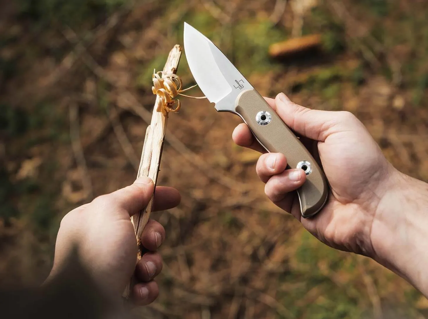 Taktisch, jagdlich, konsequent! Nichts anderes enthält die DNA von Woodland Tactical aus dem mittelfränkischen Gunzenhausen, deren Anspruch es ist, taktisches Equipment mit waidmännischem Flair zu vereinen. In Zusammenarbeit mit Böker Plus wurde das Dasos (griechisch: Wald) als kompromissloses Jagd-und Outdoormesser speziell für die Bedürfnisse von Jägern, Bushcraftern, Campern und Outdoorfans entwickelt. Ausgestattet mit einer kraftvollen D2-Klinge mit Satin-Finish und Jimpings an der Daumenauflage, meistert das in Vollerl-Bauweise konstruierte Böker Plus Dasos alle erdenklichen Schneidarbeiten spielerisch: Vom Zerschneiden groben Astwerks bis hin zu waidmännischen Anwendungen deckt das Jagdmesser eine hohe Bandbreite ab. Die balligen Griffschalen aus braunem G10 liegen auch bei Nässe sicher in der Hand und können zur besseren Reinigung einfach demontiert werden. Die auffällig großen Griffschrauben tragen zur Stabilität des gesamten Messers bei und runden das Erscheinungsbild als charakteristisches Designelement stilbewusst ab. Lieferung mit passgenauer Kydexscheide und Gürtelclip, der um 90 Grad rotierbar ist.