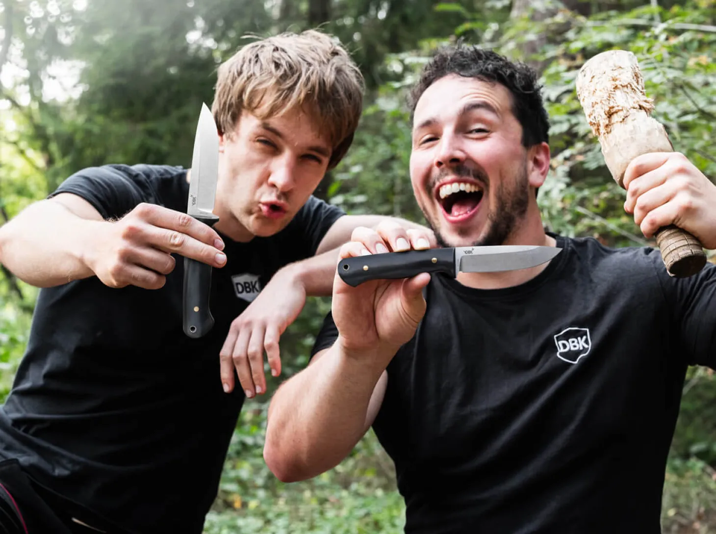 Beyond limits; just further! Neue Erfahrungen mit altbekannten Tugenden, abgeleitet von Strapaze, Hingabe und positiver Verrücktheit für ein befreiendes Durchatmen fernab alltäglicher Hektik. Frische Abenteuerluft mit gesteigertem Outdoorgehalt – ausgesuchte Zutaten, die ganz nach dem Geschmack von Maarten und Mikkie von Dutch Bushcraft Knives (DBK) sind. Die beiden Niederländer sind beste Freunde, haben das beste Hobby und sorgen auf ihrem reichweitenstarken YouTube Kanal mit über 300.000 Abonnenten für beste Unterhaltung. Mehr als nur ein guter Grund, um mit Böker zusammen ein aufregendes Bushcraft-Messer zu entwickeln, das die Natur greifbar wie nie macht. Geformt aus Leidenschaft, Schweiß und Solinger Präzision verwandelt das Böker DBK Bushfriend 2000 unbändigen Vortrieb in emotionalen Auftrieb. Dank der hochfesten Vollerl-Bauweise mit Droppoint-Klinge aus schnitthaltigem sowie schockelastischem 80CrV2 Klingenstahl wird das feststehende Messer zum unverzichtbaren Begleiter für das nächste Bushcraft- oder Outdoorcamp. Der hoch angesetzte Saber-Grind eignet sich ideal für feine Aufgaben wie dem Stöckefedern über grobe Arbeiten wie dem obligatorischen Batoning bis hin zu den teils unkonventionellen Härtetests auf dem DBK-Prüfstand. Jederzeit ein angenehmes Gefühl in der Hand vermittelt der ergonomische Griff aus nachhaltigem Richlite, einem Premium-Komposit aus Harz und FSC-zertifiziertem bzw. recyceltem Papier, das beim DBK Bushfriend 2000 in einem edlen Black Diamond-Finish gehalten ist. Messingnieten, von denen die hintere Hohlniete als Fangriemenöse verwendet werden kann, bilden einen harmonischen Kontrast und setzen ein optisches Ausrufezeichen. Lieferung mit hochwertiger Lederscheide. Handmade for nature mates – direkt aus der Böker Manufaktur Solingen.