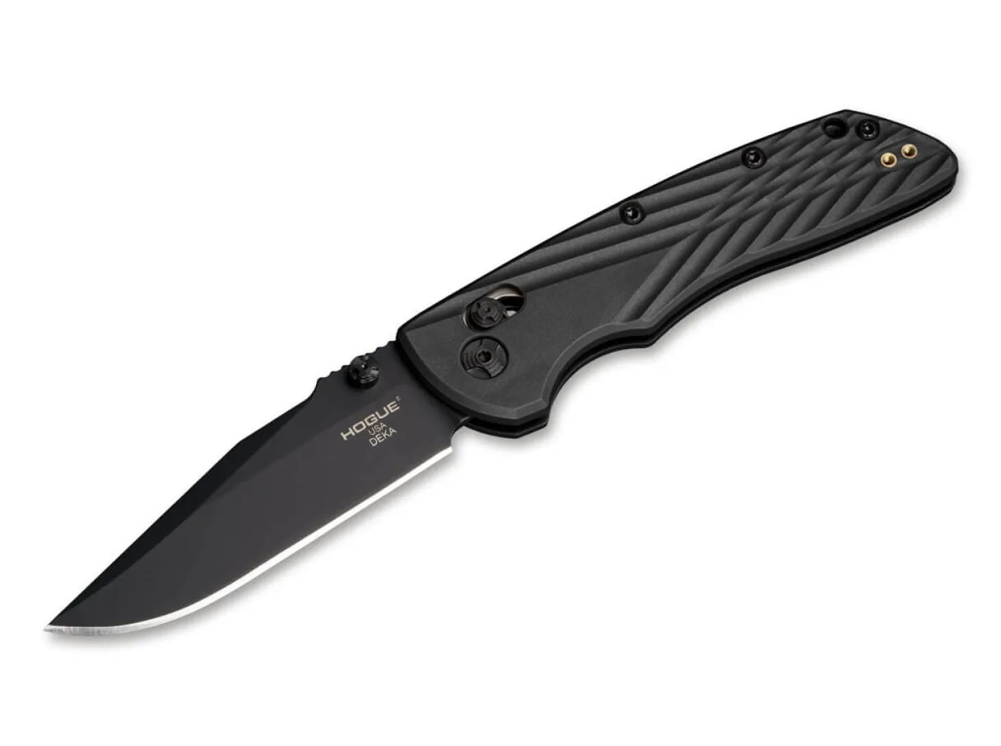 Einklang, Ordnung und Vollendung werden seit Anbeginn der Zeit durch die Zahl Zehn (griechisch: Deka) verkörpert. Allen Elishevitz grüßt aus dem Messer Olymp und präsentiert mit dem Hogue Deka ein hochmodernes Taschenmesser, das von Links- und Rechtshändern gleichermaßen verwendet werden kann und der lateinischen Grundbedeutung von „decem – zwei Hände“ in Vollendung entspricht. Der beidseitige Daumenpin öffnet die schwarze Clippoint-Klinge aus pulvermetallurgischem CPM MagnaCut, welche sicher durch den beidseitigen ABLE-Lock mit Schieberegler fixiert wird und somit ein sicheres Arbeiten ermöglicht. Der texturierte Griff aus schwarzem Polymer sorgt für eine Gewichtsersparnis und eine perfekte Handhabe bei der alltäglichen Nutzung. Mit Fangriemenöse und umsetzbarem Clip (Tip-up).