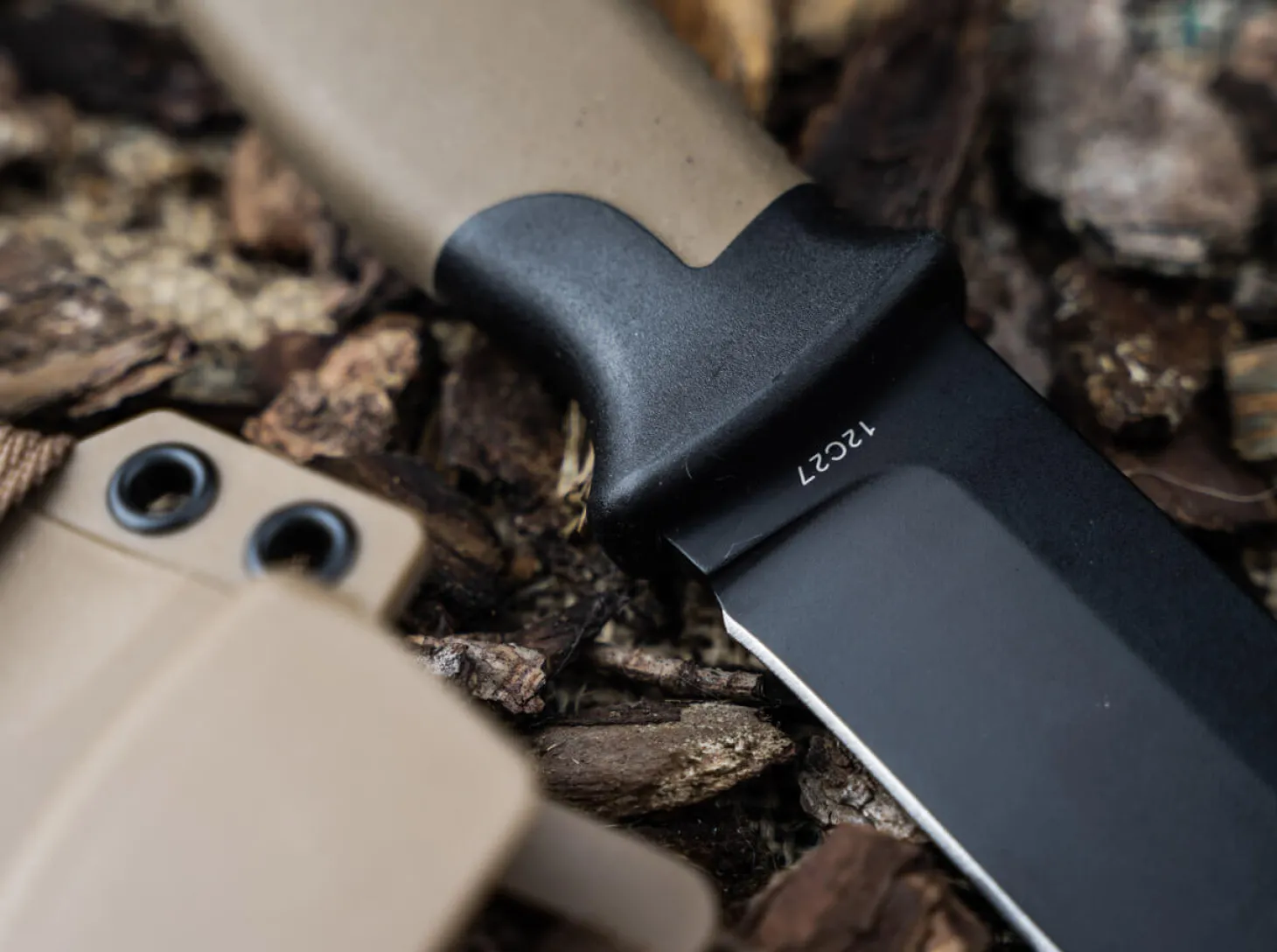 Getrimmt auf Outdoor – gemacht fürs Abenteuer. Das Böker Plus Desertman enthält die kompromisslose DNA des erfolgreichen Outdoorsman und überzeugt als ausgewachsenes Fahrtenmesser bei jedem Ausflug in die Natur. Der durchgehende Erl und die breite Klinge gewährleisten maximale Stabilität, während das hervorstehende Griffende als Hammerfläche ausgeformt wertvolle Dienste leistet. Der direkt aufgespritzte GFK-Griff besitzt eine große Gripzone aus sandbraunem TPR, welches auch bei Nässe oder Kälte ein sehr sicheres angenehmes Handling garantiert. Die Spearpoint-Klinge besteht aus 12C27 und wird zur Steigerung des Korrosionsschutzes mit einer Titanbeschichtung versehen. Lieferung mit passgenauer Kunststoffscheide.
