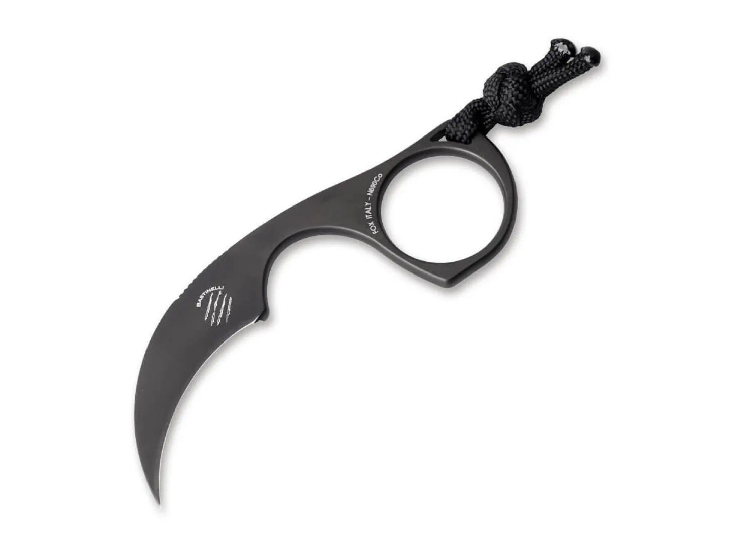 Das Diagnostic ist ein handliches Karambit Neck Knife mit Chisel Grind von Bastinelli. Die Edelstahlkonstruktion aus N690 ist mit einer haltbaren schwarzen Cerakote-Beschichtung versehen. Das Daumenloch und die strukturierte Auflagefläche am Klingenrücken garantieren optimale Kontrolle beim Schneiden. Lieferung mit praktischer Kydexscheide und Kugelkette.