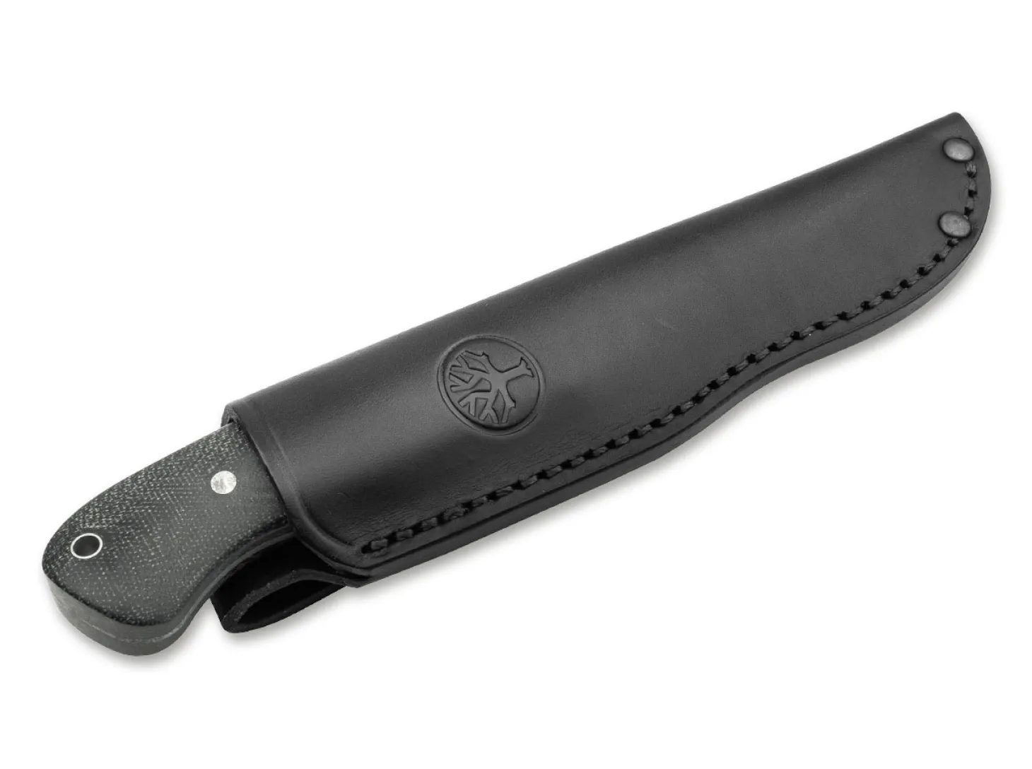 Das von Kosie Steenkamp entworfene Böker Drikas ist in der Outdoor-Variante mit einer dunklen Klinge aus N690 ausgestattet, die mit einem widerstandsfähigem Acid-Wash-Finish versehen ist. Das aufwendige Filework am Klingenrücken ist nicht nur ein besonders dekoratives Element, sondern kann auch als Daumenauflage genutzt werden und erhöht somit die Griffsicherheit. Auch die konturierten Griffschalen aus schwarzem Micarta sind für den Einsatz in der Wildnis oder auf der Jagd bestens geeignet und liegen dank der feinen Texturierung stets sicher in der Hand. Mit Fangriemenöse und praktischer Köcherscheide aus hochwertigem Leder. Handgefertigt in der Böker Messer-Manufaktur Solingen.