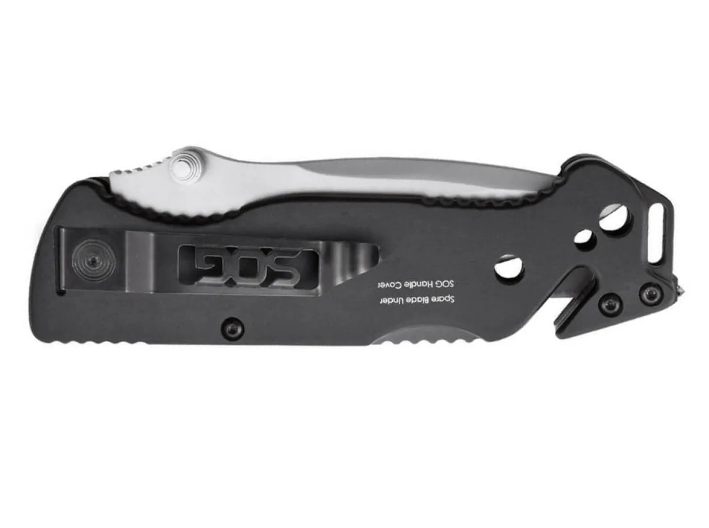 Das SOG Escape ist ein robustes Rettungsmesser mit der perfekten Größe für den alltäglichen Gebrauch. Der Aluminiumgriff verfügt über einen Leinencutter, einen Kabelabisolierer und einen Glasbrecher. Die 9Cr18MoV Klinge mit Teilwellenschliff wird durch einen stabilen Backlock arretiert. Mit Clip (Tip-down).