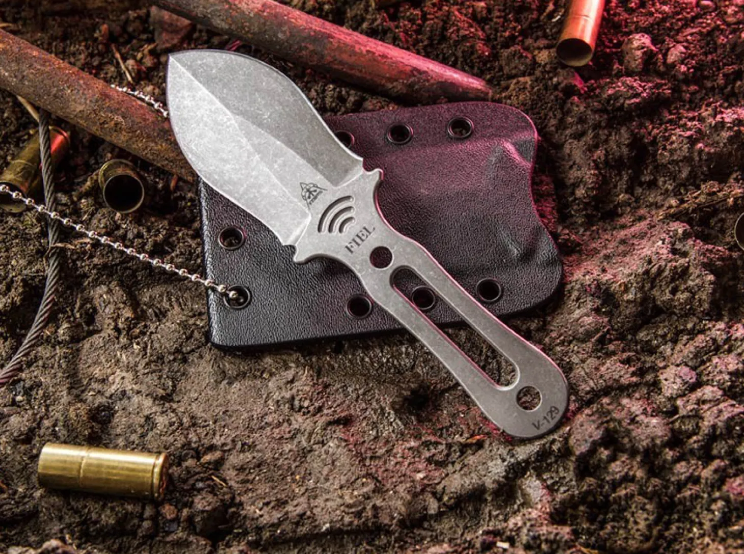 Das TOPS Fiel ist ein kompaktes Back-up-Messer mit beidseitig abgezogener Schneide. Die Kydexscheide wird mit Kugelkette geliefert, ist jedoch auch kompatibel zum großen Tek-Lok und anderen Gürteladaptern. Gefertigt aus 1095 Kohlenstoffstahl (nicht rostfrei), mit Stonewash-Finish.