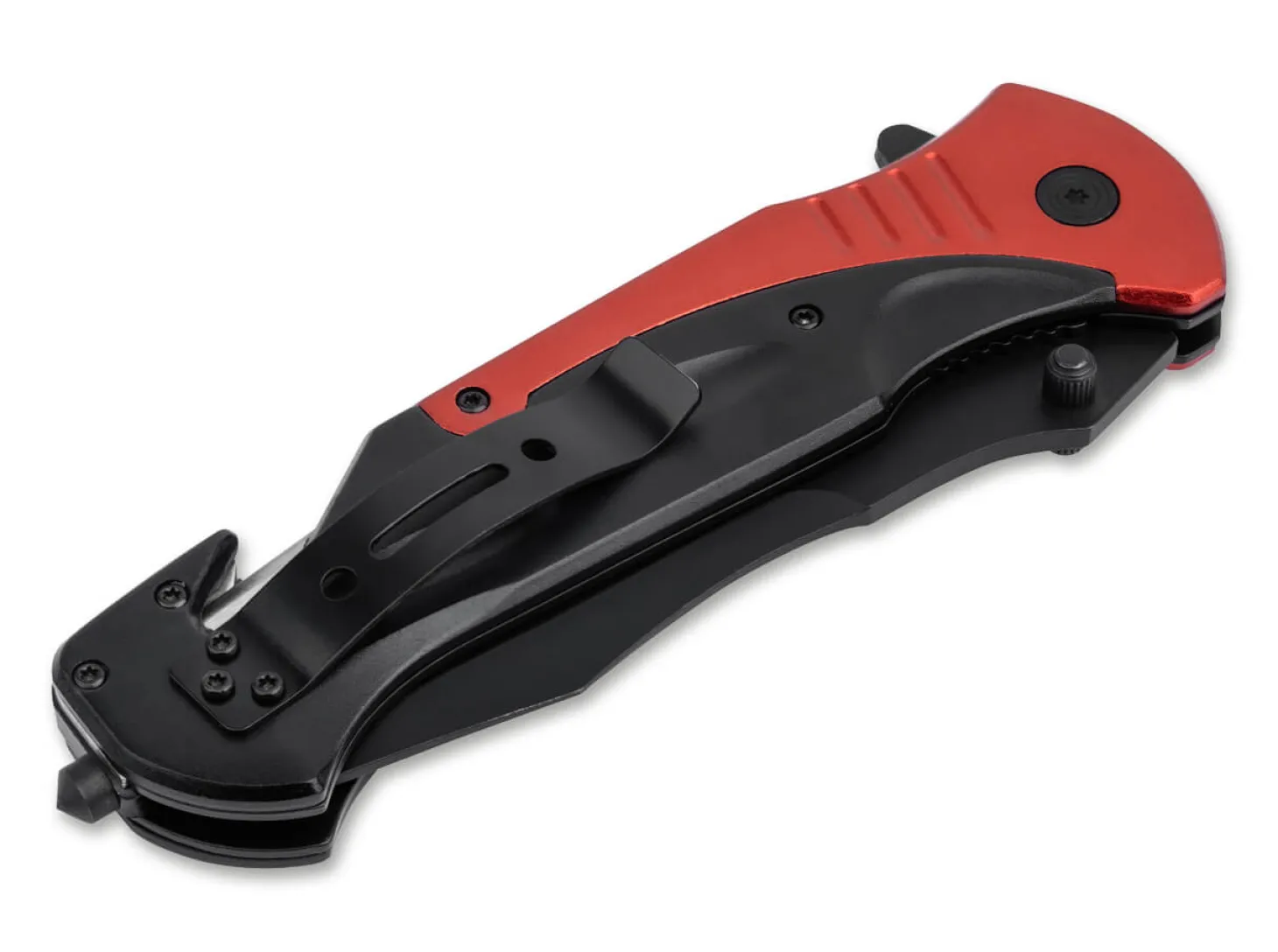 Das Magnum Fire Chief ist ein wuchtiges und imposantes Rettungsmesser. Die auffällige Farbkombination in rot-schwarz verdeutlicht den Einsatzzweck dieses Messers. Konzipiert als Notfallwerkzeug mit Glasbrecher, Gurtschneider und partiellem Wellenschliff. Ein stabiler Linerlock sorgt für die notwendige Stabilität. Das in den Griff eingelegte, goldfarbene Emblem widmet dieses Messer den Männern und Frauen, die im Feuerwehrdienst stehen. Auf der Rückseite des Taschenmessers ist außerdem ein Clip angebracht.Die Magnum-Rettungsmesser sind voll funktionsfähig und einsatzbereit, allerdings sind sie nicht für den täglichen, harten Einsatz von professionellen Einsatzkräften konzipiert worden. Für professionelle Anwender empfehlen wir zum Beispiel die Modelle Böker Plus Savior oder FKMD A.L.S.R. 2.
