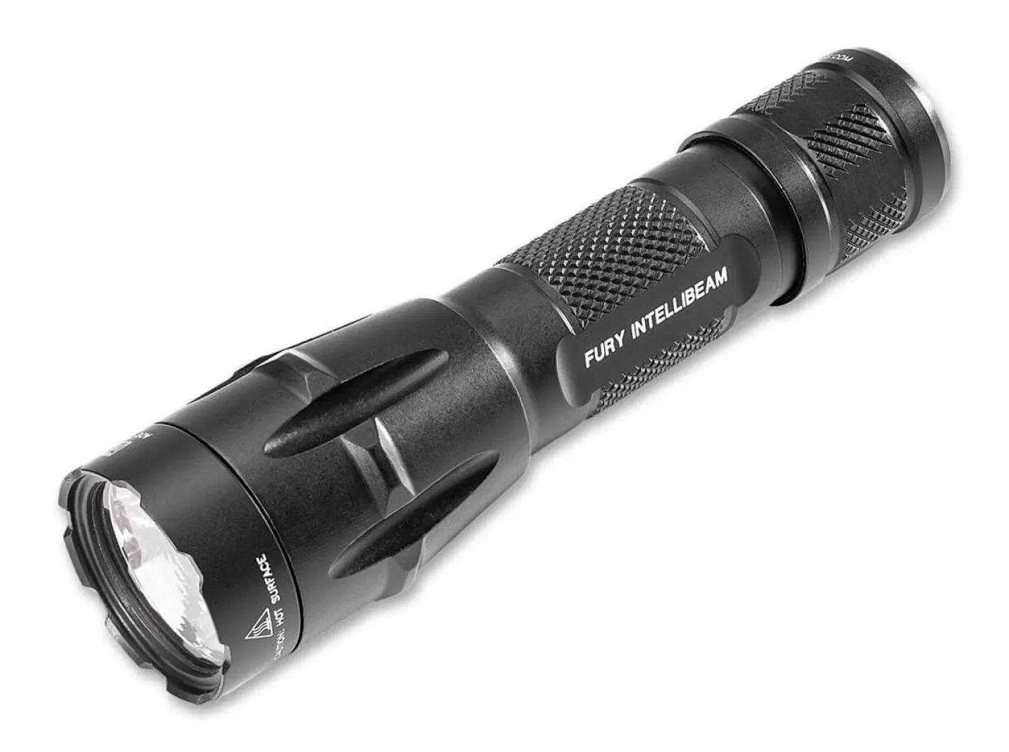 Die SureFire Fury IntelliBeam ist eine zuverlässige taktische Taschenlampe, die entweder mit dem im Lieferumfang enthaltenen 18650 Li-Ion Akku oder zwei CR123A Lithium Batterien betrieben werden kann. Die Leistung von maximal 1500 Lumen lässt sich mittels IntelliBeam-Technologie stufenlos an die Umgebungsbedingungen anpassen, die maximale Reichweite liegt bei ca. 315 Metern. Über dem taktischen Schalter am Ende des hochfesten Aluminiumgehäuses werden die verschiedenen Funktionen aktiviert. Der leistungsstarke Li-Ion Akku SF18650B mit 3500 mAh lässt sich per mitgeliefertem Micro-USB-Kabel aufladen, sodass kein zusätzliches Ladegerät erforderlich ist. Das robuste Gehäuse ist mit einer texturierten Oberflächenstruktur versehen und ist wasserdicht nach IPX7. Die SureFire Fury IntelliBeam kann im Betrieb mit dem 18650 Li-Ion Akku für bis zu 40 Stunden eingesetzt werden.