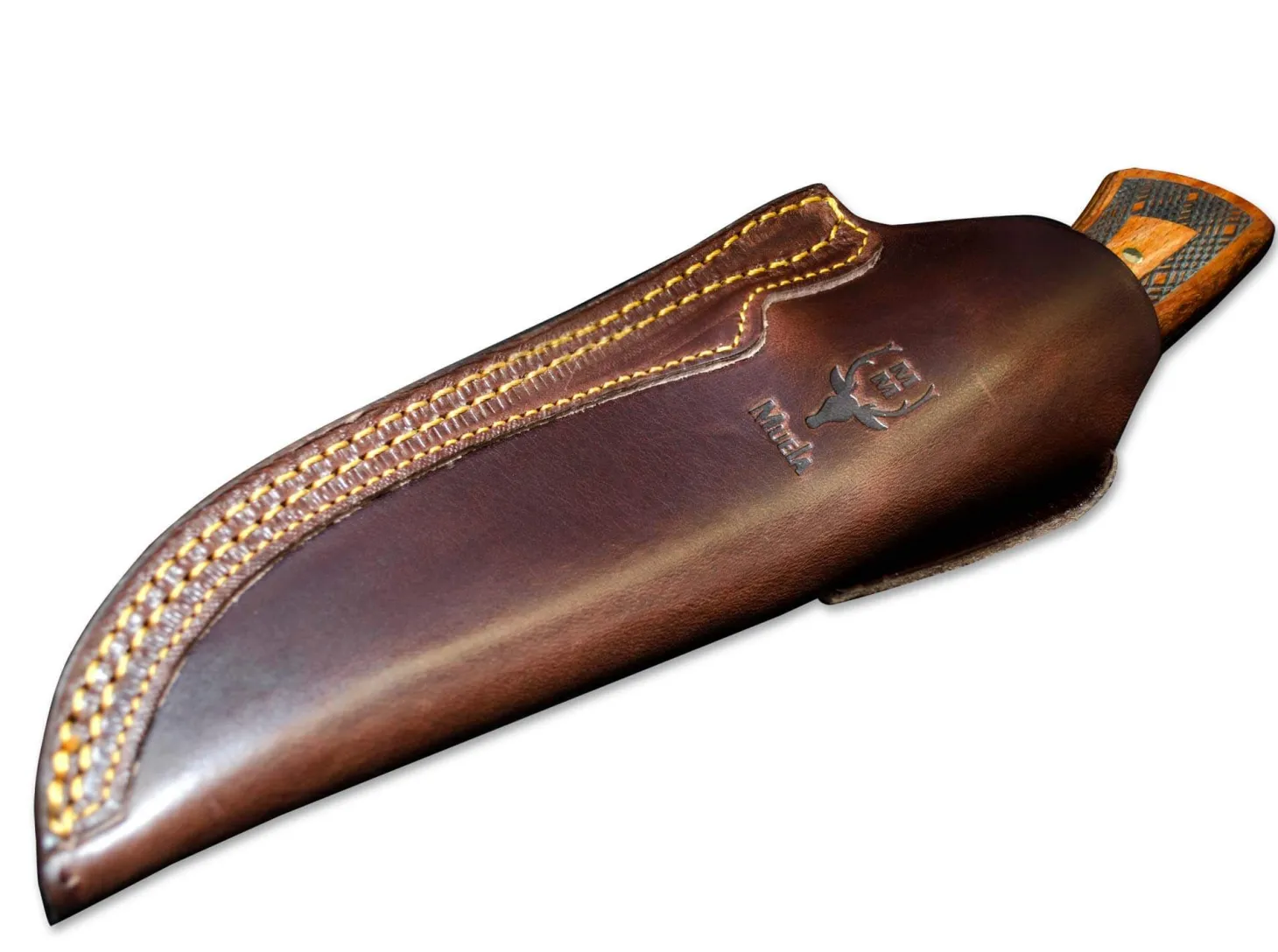Messingbacken, Beschalung aus stabilisierter Buche. Vollerlbauweise. Klingenstahl 4116.