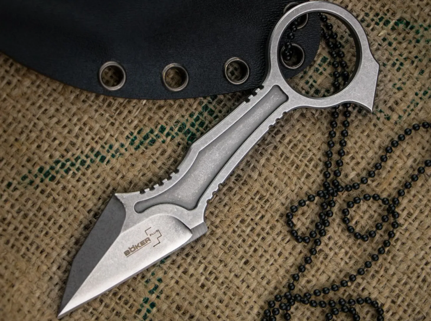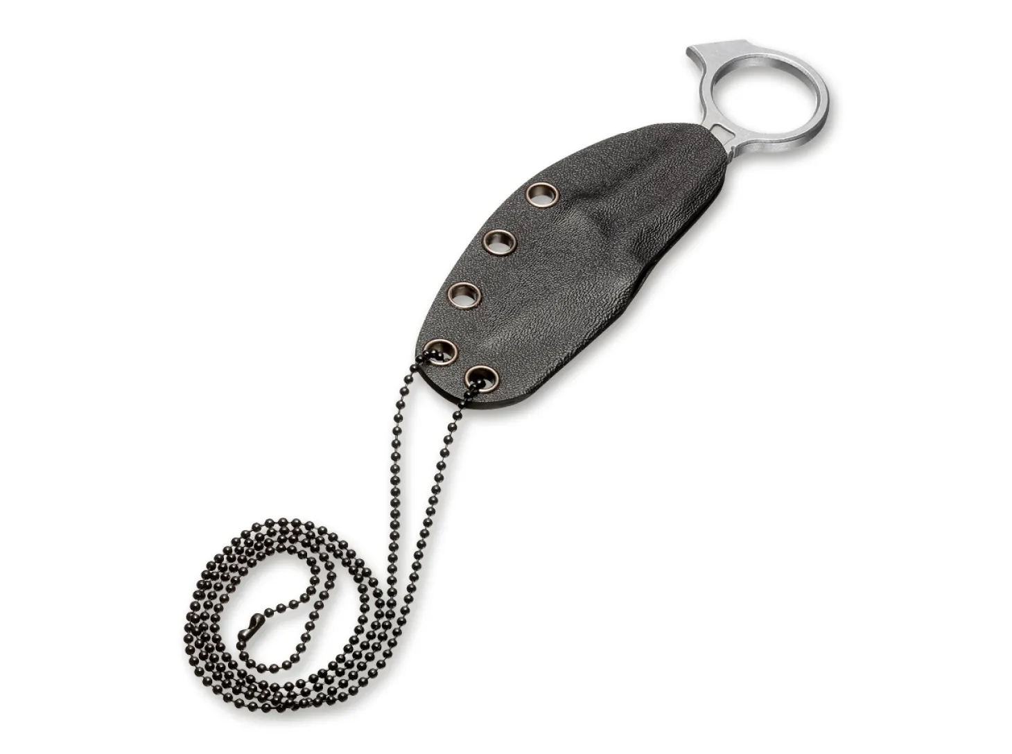 Das Böker Plus GITFO-DA von DJ Urbanovsky ist die kompakte Version des ergonomisch besonders gelungenen Böker Plus GITFO. Es bietet die gleiche hohe Griffsicherheit, bietet sich mit seiner verkürzten Gesamtlänge aber insbesondere als Neck Knife an, da es mit seiner schlanken Ganzstahlkonstruktion sehr flach und kompakt baut und einen überragenden Tragekomfort bietet. Der Ring am Griffende gewährleistet unzählige Griff- und Handlingsoptionen und macht das GITFO-DA zu einem ausgezeichneten Back-Up. Durch die Kugelkette und die Kydexscheide trägt sich das Messer komfortabel und zugriffsbereit um den Hals. Selbstversändlich bietet die Scheide auch die Möglichkeit, für die klassische Trageweise einen Gürteladapter zu montieren. Die Mulden und Riffelungen an Griff und Klinge sorgen im Zusammenspiel mit dem Ring für eine sehr gelungene Ergonomie. Gefertigt aus 440C, mit Stonewash-Finish. Lieferung mit schlanker Kydexscheide und Kugelkette.