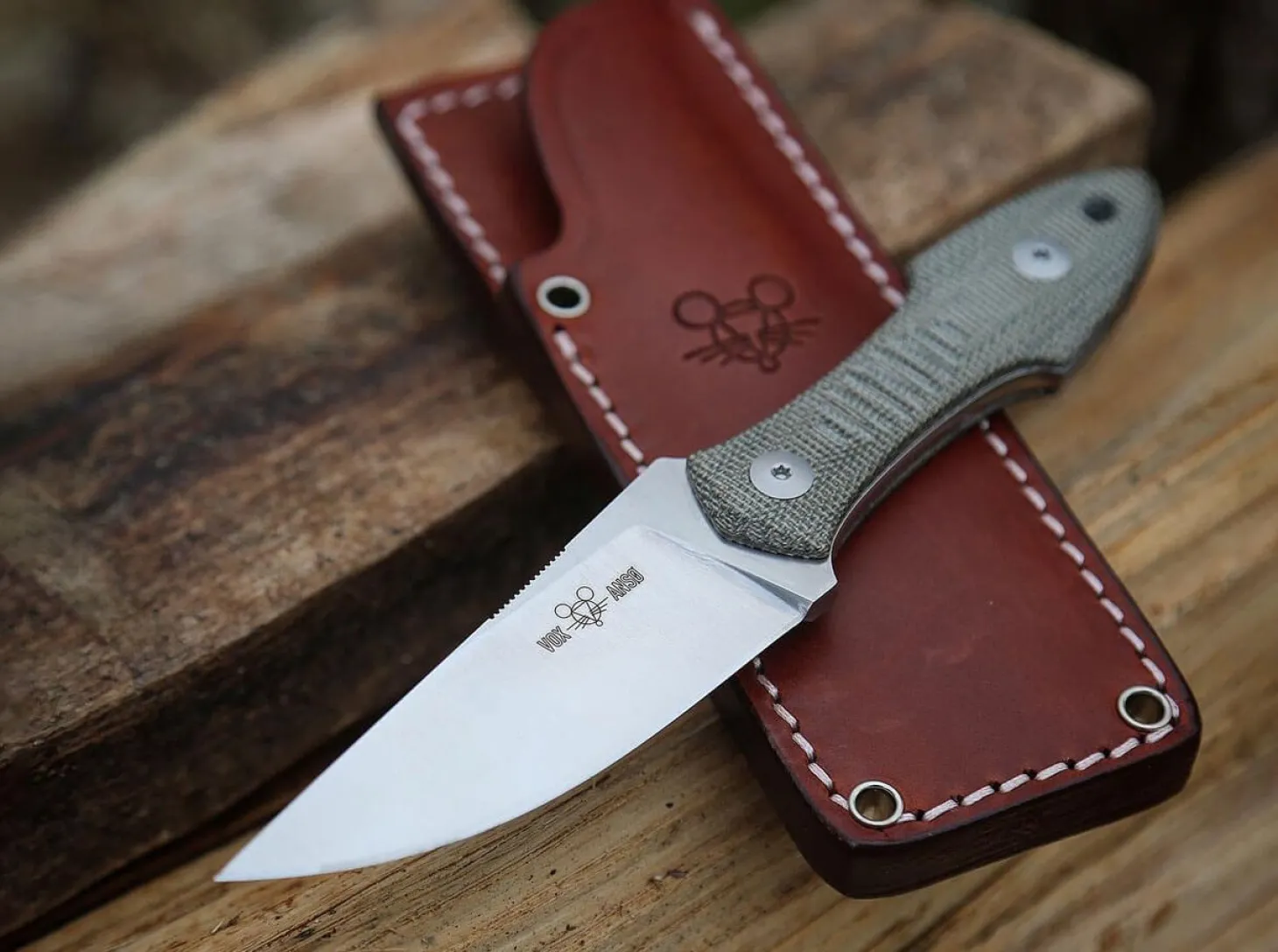 Jesper Voxnaes und Jens Anso sind bekannt für Ihre innovativen und zugleich praxisnahen Designs. Das GMF 3 von GiantMouse vereint alltägliche Praxis mit einem Hauch Historie. Das feststehende Messer punktet mit einer hochwertigen Klinge aus N690, die über eine Riffelung im Klingenrücken verfügt und somit Schneidarbeiten noch sicherer macht. Der grüne Griff erinnert an den kaukasischen Kindschal, auch Kosakendolch genannt, und verspricht dank ergonomischer Form einen außerordentlichen Halt. Mit Fangriemenöse und edler Lederscheide.