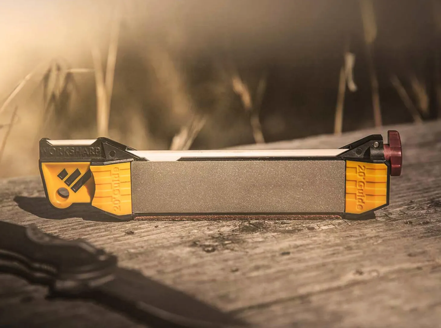 Der Work Sharp Guided Field Sharpener ist ein echtes Multitalent für unterwegs. Zwei Diamantflächen (Körnung 220 und 600), drei verschiedene Keramik-Oberflächen (fein, mittel, Rille), ein keramischer Schärfer für Wellenschliffe sowie ein Abziehleder lassen keine Wünsche offen. Was den Schärfer aber wirklich einzigartig macht, sind die 20°-Winkelführungen, die seitlich an allen Oberflächen angebracht sind und die das Einhalten des korrekten Schärfwinkels deutlich vereinfachen. Die abnehmbaren Diamantflächen lassen sich im Verschleißfall ersetzen und gewähren zudem Zugang zu einem kleinen Staufach. Die gummierten Winkelführungen dienen gleichzeitig als rutschsichere Standfüße beim Einsatz als Bankstein. Die robuste Bauart garantiert höchste Zuverlässigkeit. Mit Fangriemenöse. Diamantschärfflächen 100 x 25 mm.