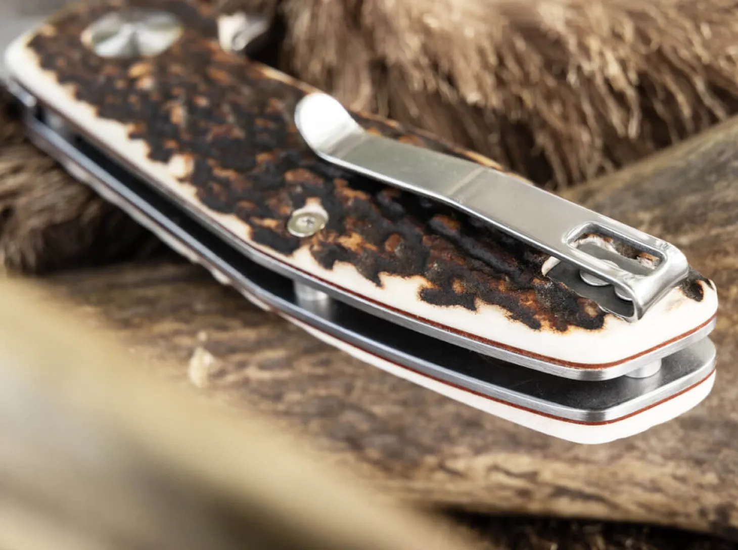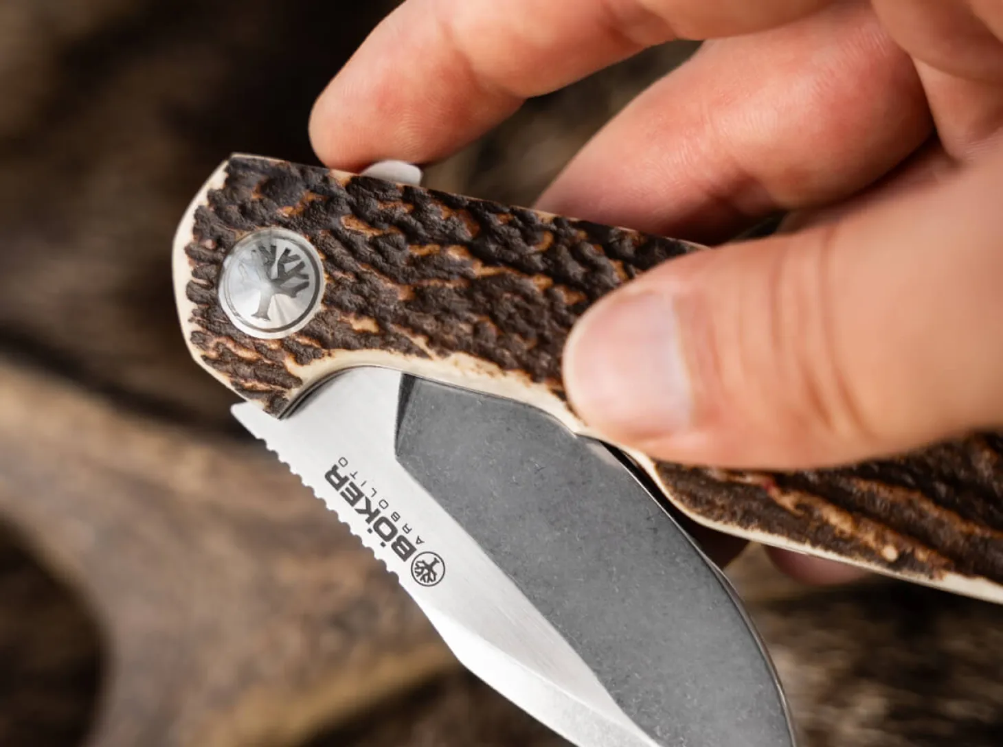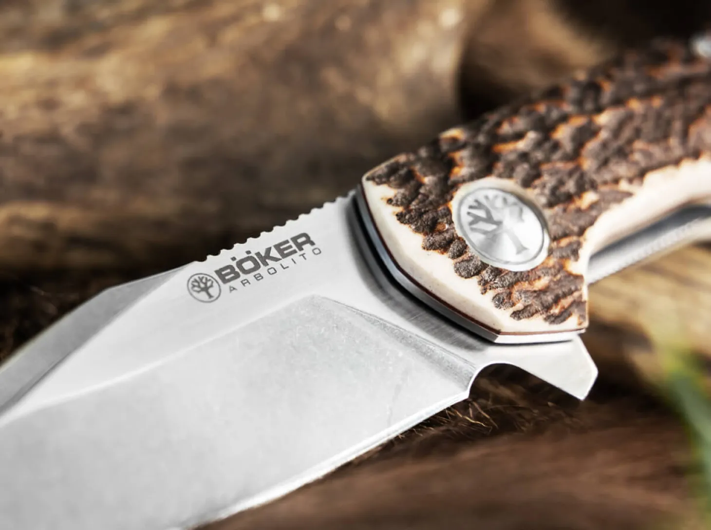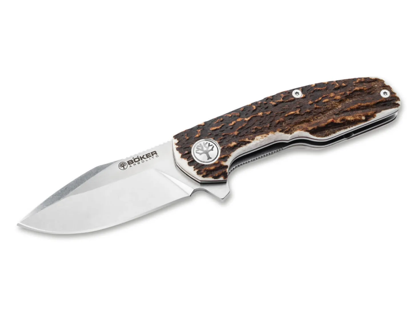 Die Mission: den stressigen Alltag mit verdienter Auszeit verfeinern. Die Anforderung: Charakter! Eine heldenhafte Aufgabe, derer sich das Böker Arbolito Heroína (span. Heldin) unerschrocken annimmt und als vielseitiges Taschenmesser die Bereiche EDC, Natur und Jagd heroisch in Einklang bringt. Die imposante Klinge aus schnitthaltigem 14C28N öffnet geschmeidig weich per Flipper und wird durch den felsenfesten Liner-Lock arretiert. Für den traditionellen Moment sorgen die Griffschalen aus ausgesuchtem Hirschhorn, während sich die opulente Abdeckung der Klingenachsschraube mit dem weltbekannten Böker Baum harmonisch ins Gesamtbild einfügt. Mit Tip-Up Clip (r), der eine Deep-Carry-Trageweise erlaubt.