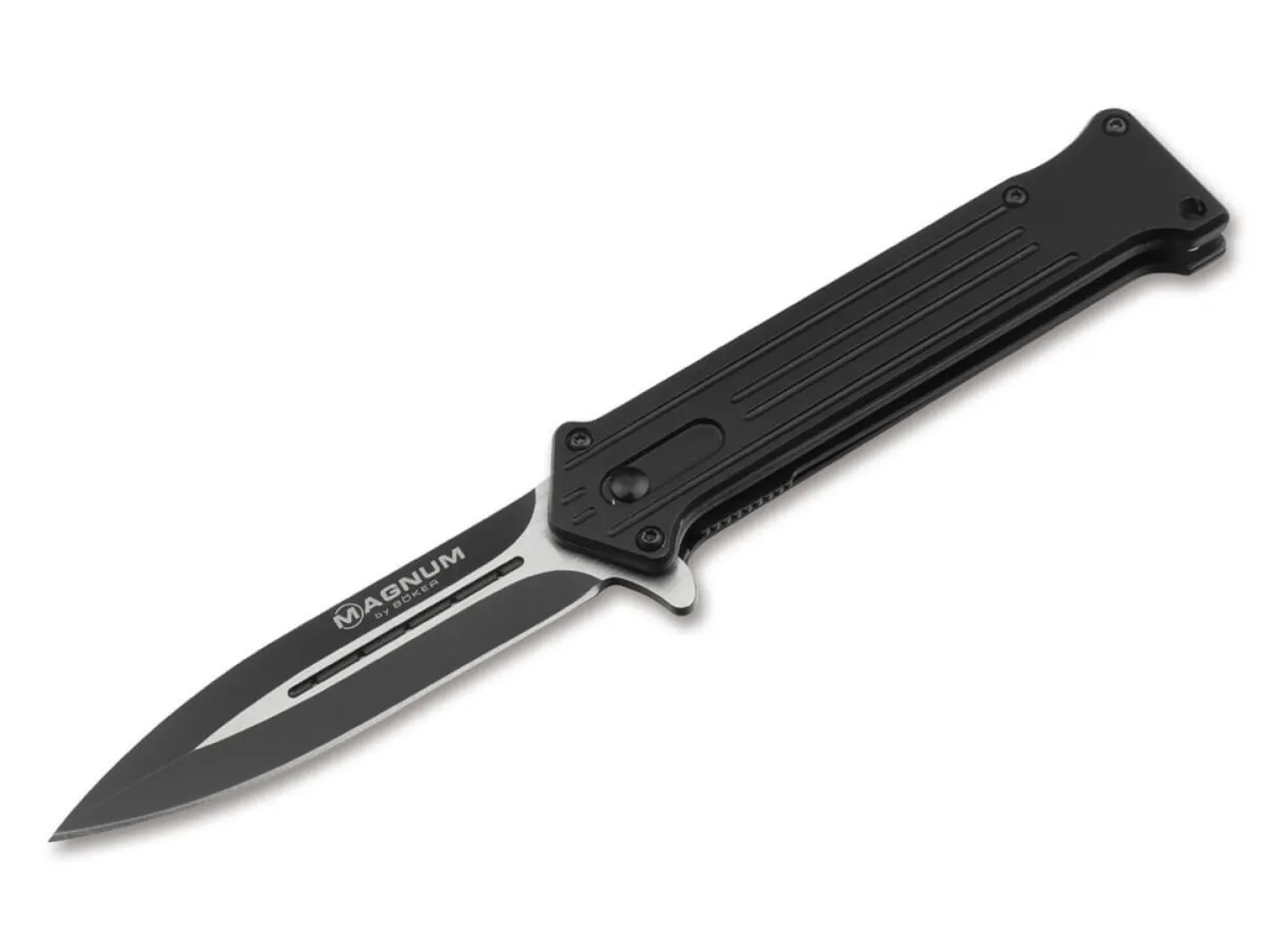 Hinweis: Seit dem 31.10.2024 gilt in Deutschland ein generelles Umgangs- und Besitzverbot von Springmessern aller Art. Es handelt sich ab sofort um verbotene Gegenstände, deren Besitz strafbar ist. Der Besitz von bestimmten Springmessern ist gem. Anlage 2 zum Waffengesetz Abschnitt 1 Nummer 1.4.1 nur noch Personen erlaubt, bei denen ein berechtigtes Interesse besteht, das eine einhändige Nutzung erforderlich macht (etwa aufgrund eines fehlenden Arms oder einer fehlenden bzw. dysfunktionalen Hand), oder der Umgang im Zusammenhang mit der Berufsausübung (z.B. Jagd, Handwerk) oder dem Sport (z.B. Segeln oder Bergsteigen) erfolgt. Gleiches gilt für gewerbliche Händler oder Hersteller solcher Messer. Die Abgabe erfolgt daher nur noch an berechtigte Personen. Bitte prüfen Sie vor der Bestellung, ob ein solches berechtigtes Interesse bei Ihnen vorliegt.Das beliebte Erfolgsmodell Magnum Intricate bekommt einen kompakten Ableger, dessen Größenunterschied bewusst kaum wahrzunehmen ist, aber dennoch einen noch gefälligeren Eindruck hinterlässt. Das Magnum Intricate Compact verfügt über eine einseitig geschliffene Spearpoint-Klinge aus rostfreiem 440A Edelstahl, die mit einem eindrucksvollen Two-Tone-Finish versehen ist und federunterstützt per Flipper geöffnet wird. Ein zuverlässiger Linerlock übernimmt die Verriegelung. Mit Fangriemenöse und schwarzem Clip (Tip-up/r).