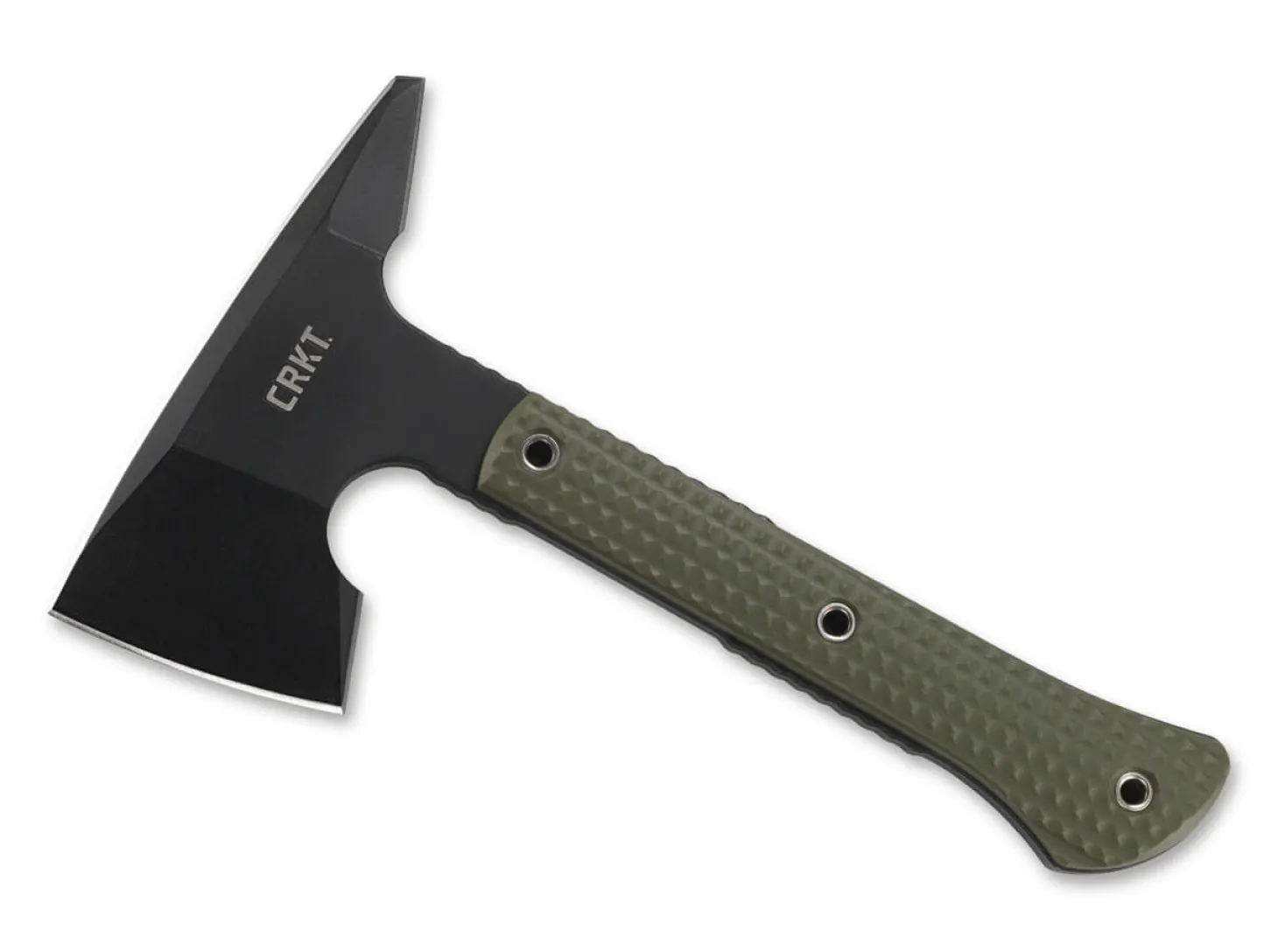 Das von Ryan Johnson entworfene CRKT Jenny Wren Compact ist ein kompaktes aber extrem robustes Tomahawk, das vielseitig eingesetzt werden kann. Der schwarz beschichtete Kopf aus hochwertigem SK-5 Kohlenstoffstahl ist mit einer widerstandsfähigen Pulverbeschichtung versehen und hält auch größeren Beanspruchungen problemlos stand. Der ebenfalls äußerst stabile Griff aus FRN ist dank der feinen Texturierung selbst bei Nässe äußerst griffig. Mit MOLLE-kompatibler Scheide aus FRN.