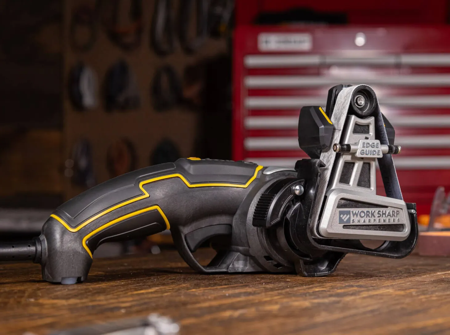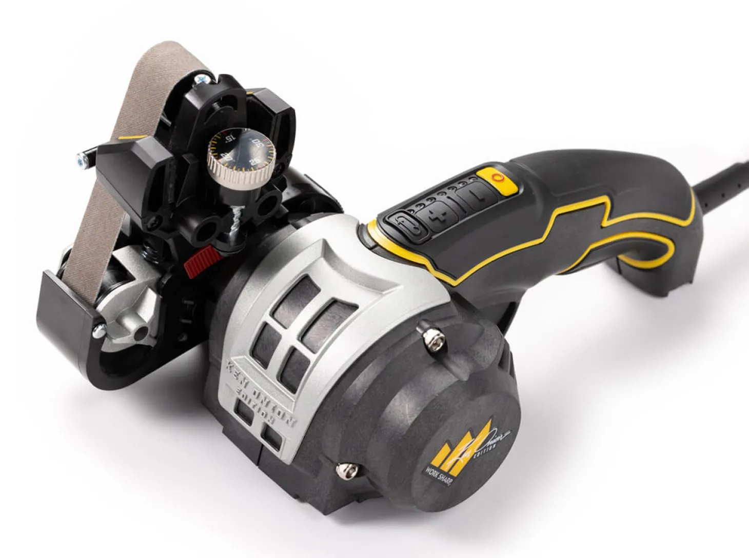 The peak of sharpness! Zusammen mit Messermacher-Legende Ken Onion hat Work Sharp den Ken Onion Edition Knife & Tool Sharpener Mk.2 als Vermächtnis und gleichsam Impulsgeber des weltweit erfolgreichen Vorgängers weiterentwickelt. Das Verdikt: optimale Schärfe bei minimalem Aufwand! Der elektronische Messerschärfer sorgt dank seiner intuitiven Bedienung für die perfekte Schärfe. Durch integrierte, flexible Schleifbänder, einer optimierten Präzisions-Schleifführung sowie einer elektronischen Drehzahlregelung mit 7 Stufen wird ein schnelles und einfaches Schärfen mit gleichbleibenden Ergebnissen zum Kinderspiel. Die verbesserte Winkelführung des Messerschleifers bietet für jeden beliebigen Schneidwinkel zwischen 15° und 30° eine Feineinstellung in 0,5° Schritten, während die Fütterung aus weichem Leder ein Verkratzen der Klinge effektiv verhindert. Wenn es auf präzise Schärfergebnisse ankommt, liefert die elektronische Geschwindigkeitsregelung mit LED-Anzeige ein sattes Drehmoment bei niedriger Drehzahl, während die Hochgeschwindigkeitseinstellung die nötige Leistung für schwere Schärf- und Schleifarbeiten an einer Vielzahl von Messern und Werkzeugen bietet. Mit der flexiblen Schärfbandtechnologie wandert nun Profi Know-How von Messermachern und -herstellern an die heimische Werkbank. Die mitgelieferten 3/4″ x 12″ Norton Schleifbänder unterschiedlicher Körnung (je 1x P120 Extra Coarse, X65 Coarse, X22 Medium, X4 Fine und 6000 Extra-Fine) bieten von der Reparatur beschädigter Klingen bis hin zur Erstellung einer scharfen, hochpolierten Schneide ein breites Einsatzspekturm und stehen für Langlebigkeit sowie Präzision. Das elektronische Schärfgerät ist ideal zum Schärfen von Taschenmessern, feststehenden Messern, Kochmessern, Scheren, Äxten, Werkzeugen oder Klingen mit Wellenschliff. Als weltweit führender Hersteller von Messerschärfern steht Work Sharp für Qualität, Innovation und intuitive Bedienkonzepte. Entwickelt, kalibriert und qualitätsgeprüft in Ashland, Oregon in den USA. Betriebsbereit, 220V Netzanschluss.