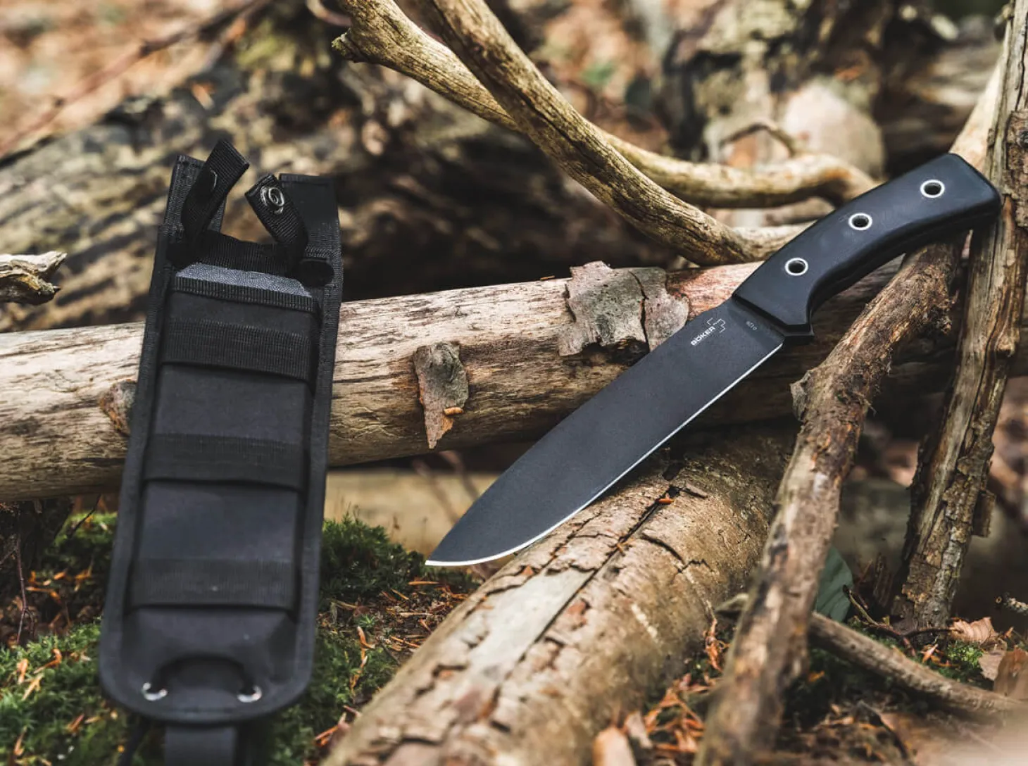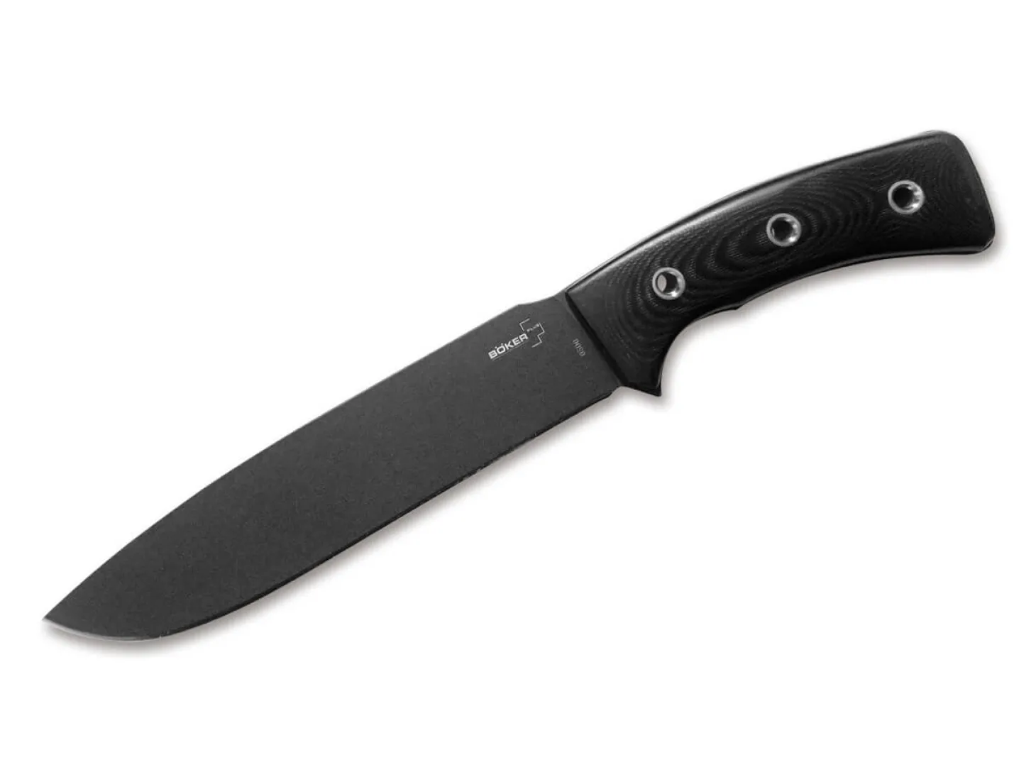 Das vom ungarischen Messermacher Sándor Hegyes entworfene Böker Plus Komondor ist ein praxistaugliches, überaus strapazierfähiges Camp- und Outdoormesser. Die aus hochwertigem SK-5 gefertigte Vollerl-Konstruktion ist mit aufgesetzten Griffschalen aus rutschfestem G10 ausgestattet. Die großen Hohlnieten im Griff senken nicht nur das Gewicht, sondern ermöglichen auch die Anbringung eines Fangriemens. Gerade im Outdoorbereich ist eine Klinge aus Kohlenstoffstahl für viele noch immer die erste Wahl, denn die leichte Nachschärfbarkeit stellt gerade in der Wildnis natürlich einen enormen Vorteil dar. Die dunkle Pulverbeschichtung der wuchtigen Klinge sorgt dabei dennoch für einen ausgezeichneten Korrosionsschutz, während der komplette Flachschliff gleichzeitig ausgezeichnete Schneideigenschaften gewährleistet. Mit praktischer Nylonscheide mit Durchstichschutz.