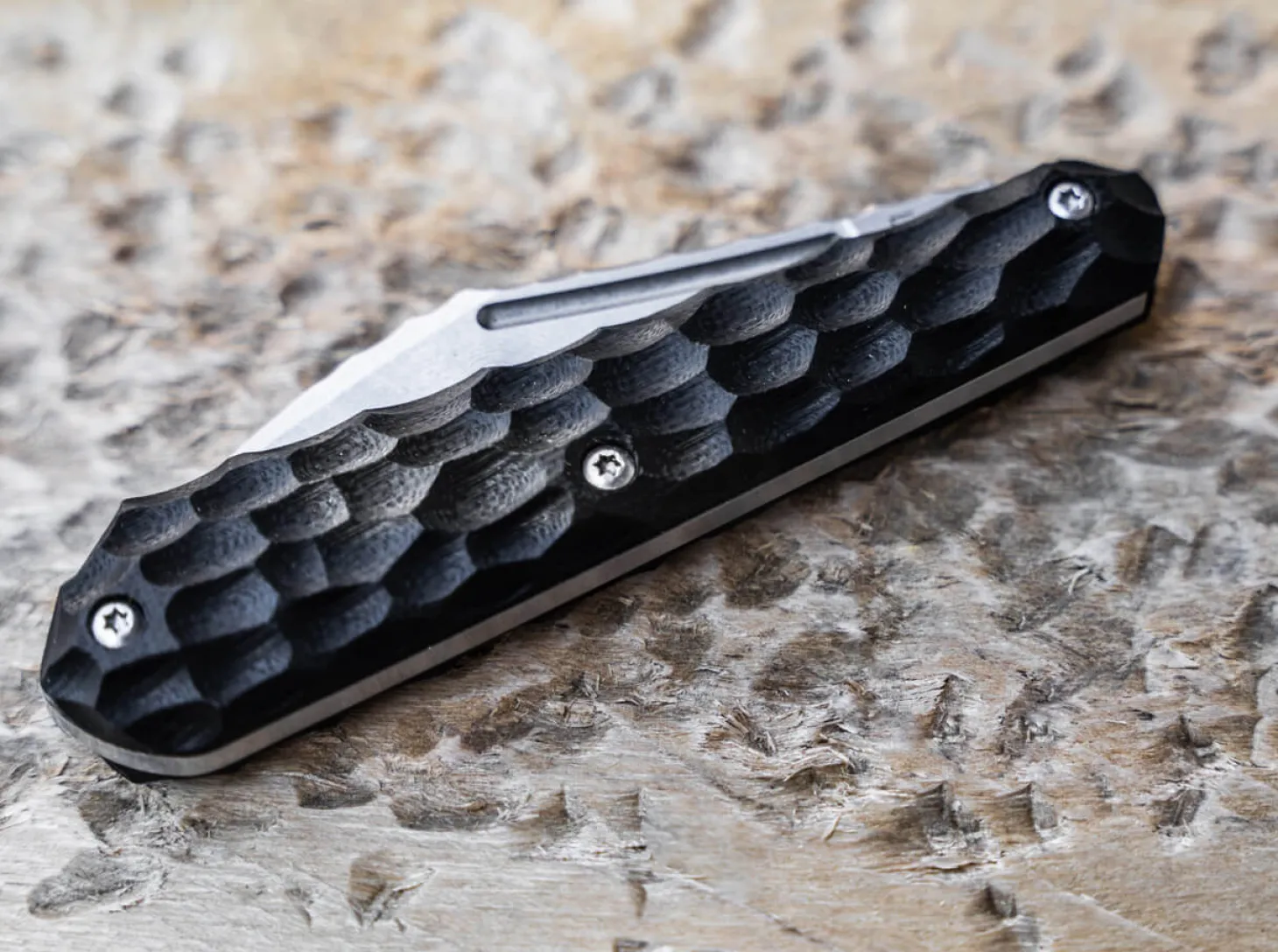 Dem ukrainischen Messermacher Alexander Krava gelingt es in seinen Entwürfen vortrefflich, Form und Funktion auf höchstem Niveau zu vereinen. Angelehnt an Koteyka, einem unter Kennern der Computerszene nicht ganz ernst gemeinter Virus mit einer Katze als Gallionsfigur, entwarf der Designer das gleichnamige Slipjoint-Messer. Dreidimensional gefräste G10 Griffschalen sorgen mit samtpfotiger Tatzen-Struktur bis zum Klingenrücken für unvergleichlichen Halt, während die D2 Klinge mit Stonewash-Finish in Lauerstellung liegt und erst mit einem leisen Schnurren des Nagelhaus auf ihre Beute aus alltäglichen Schneidarbeiten losgelassen wird. Auch ohne Verriegelungsmechanismus wird die Klinge sicher von der straffen Feder gehalten. Ohne Clip und ohne Fangriemenöse, dafür mit viel geheimnisvoller Eleganz.