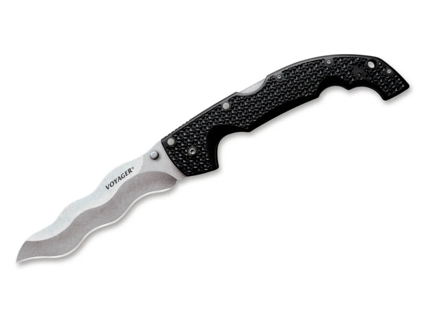 Das Cold Steel Kris Voyager versteht sich als ein wahres Messer für jedermann. Leicht, handlich komfortabel und äußerst scharf eignen sich die robusten Messer ideal zum Jagen, Campen oder zum Verrichten von Alltagsarbeiten. Sie sind in Überlebens- und Rettungssituationen hervorragend und erfreuen sich daher auch bei Polizei und Militär großer Beliebtheit. Sie werden in Präzisionsarbeit gefertigt und erfüllen Cold Steels höchste Qualitätsansprüche. Die wellenartige Klinge aus japanischem AUS 10A-Stahl öffnet per Daumenpin und ist mit Cold Steels zuverlässigen Tri-Ad-Verriegelungsmechanismus ausgestattet. Die ergonomischen Griffe aus Griv-Ex sind mit Platinen aus gehärtetem Aluminium verstärkt und sorgen selbst bei ausgedehntem Gebrauch unter härtesten Bedingungen für hohen Komfort und sicheren Halt. Mit umsetzbarem Tip-Up Clip und Fangriemenöse.