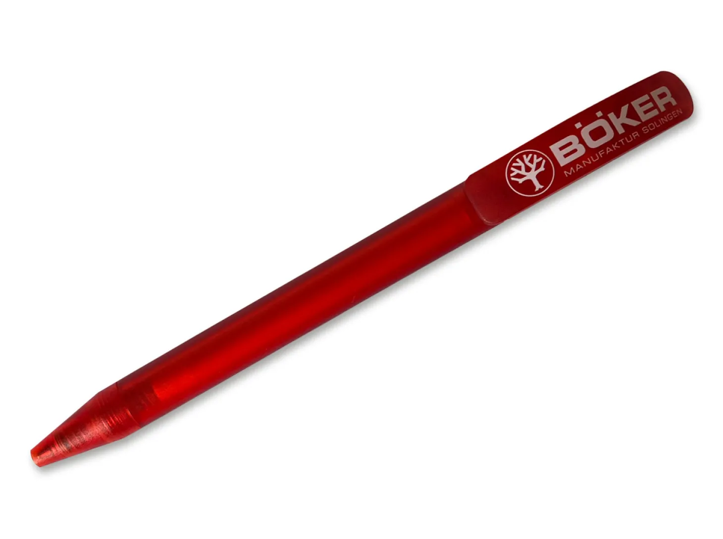 Hochwertiger roter Kugelschreiber aus Kunststoff mit Böker Logo.