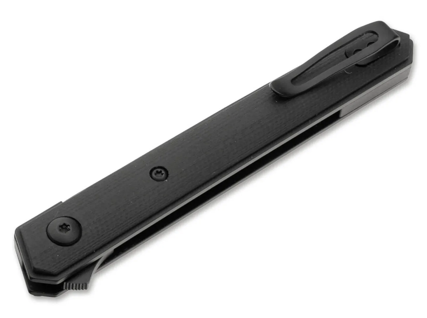 Die schlanke Bauart und die exklusive Materialwahl machen das Böker Plus Kwaiken Air zu einem edlen Crossover zwischen Gentleman-Folder und Einsatzmesser. Um diesen Brückenschlag noch leichter zu vollziehen, bietet das Kwaiken Air Mini bei deutlich reduzierten und damit taschentauglicheren Abmaßen die gleichen herausragenden Qualitäten wie der große Bruder. Mit seiner geradlinigen und praktischen Form ist das moderne Taschenmesser mittlerweile zu einer wahren Ikone geworden. Die sauberen Linien und das schlanke Design wurden bei der Leichtbauvariante nochmals auf eine kompromisslose Gewichtsreduktion hin optimiert, obwohl das Messer im geschlossenen Zustand weiterhin die komplette Klinge aufnimmt. Der Flipper sorgt für eine intuitive Bedienung und zusätzliche Sicherheit, während der Linerlock die kugelgelagerte Klinge aus schwarz beschichtetem VG-10 sicher arretiert. Unterstrichen wird die Leichtfüßigkeit des Gentleman-Folders durch die Griffschalen aus widerstandsfähigem G10, die dem komplett schwarzen Messer eine taktische Anmutung verleihen. Mit Fangriemenöse, demontierbarem Deep-Carry-Clip (Tip-up/r) und hochwertigem Nylon-Etui zur Aufbewahrung.
