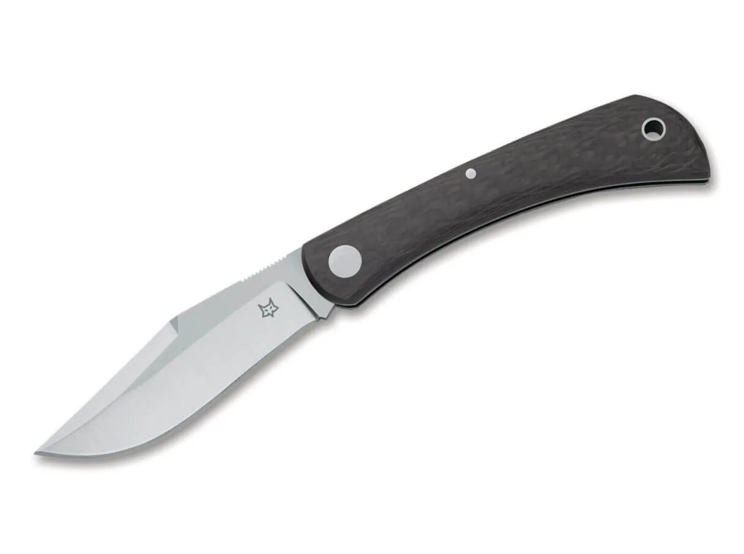 Das Fox Libar ist ein klassisches Taschenmesser für den Alltag, das sowohl auf eine Öffnungshilfe als auch auf eine Arretierung verzichtet. Die Klinge des Slipjoint-Messers wird aus pulvermetallurgischen M390 gefertigt und ist mit einer ausgeprägten Fehlschärfe versehen. Dank der Riffelungen am Klingenrücken und der ergonomischen Linienführung des modernen Kohlefaser-Griffs liegt das Libar stets sicher in der Hand. Das extrem leichte Messer verzichtet auf einen Clip und wird stattdessen mit Fangriemenöse und einem schwarzen Leder-Stecketui ausgeliefert.