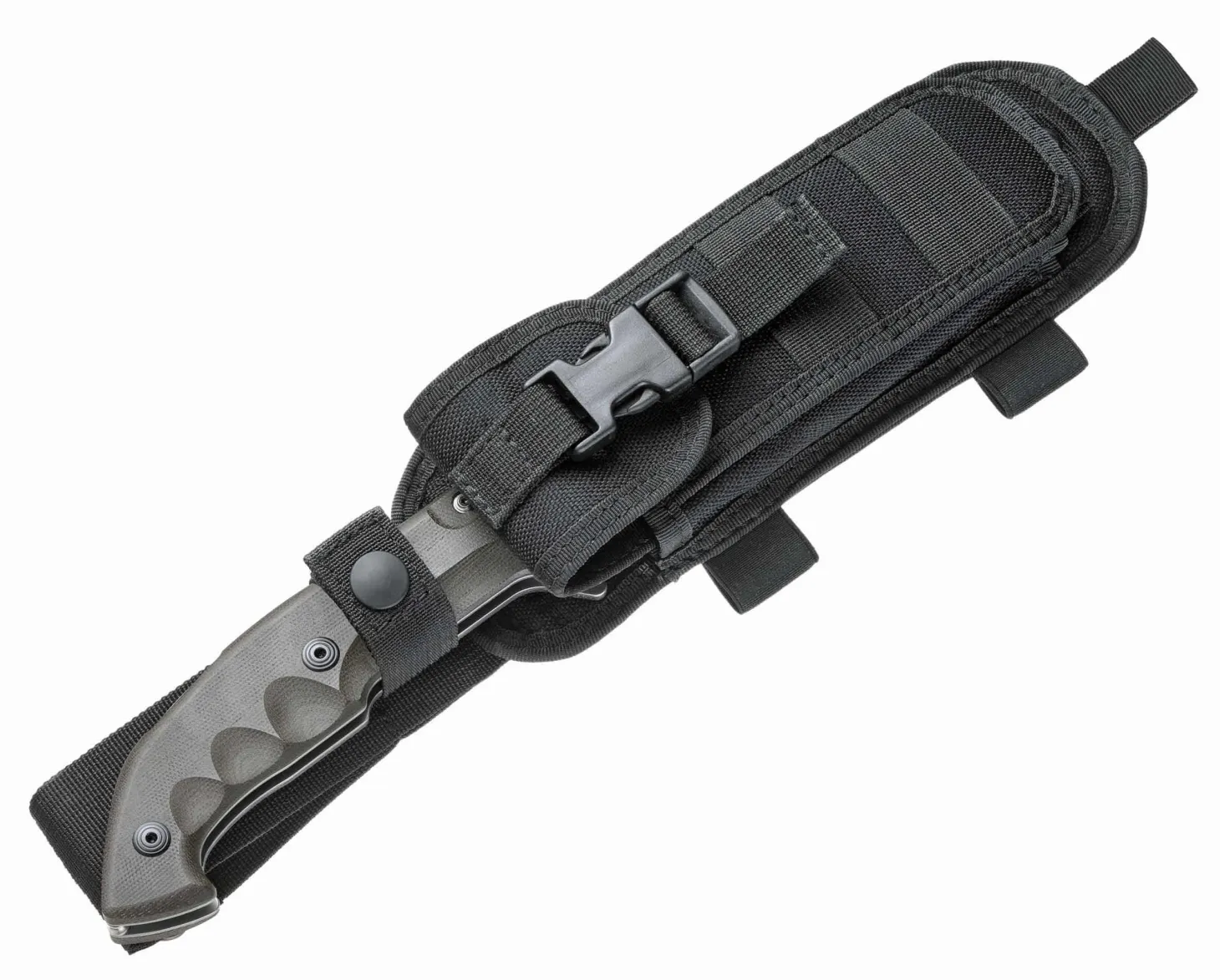 Ein gewaltiges Klappmesser bietet FKMD mit der Klappversion des legendären Trakker an. Es fällt schwer, sich die Dimensionen und die Robustheit dieses Messers vorzustellen, ohne es in der Hand zu halten. Aber schon beim ersten In-die-Hand-nehmen wird klar, dass das Meskwaki Tracker kein Spielzeug ist. Die vorderlastige Klinge und die intelligente Griffgestaltung erlauben eine Vielzahl von Anwendungen, vom Schnitzen über feinere Schneidarbeiten bis hin zum Hacken. Der Lockback kann mit einer Zusatzsicherung gesichert werden, und die ausgeklügelte Cordurascheide bietet die Möglichkeit, das Messer offen oder geschlossen zu tragen. Ein beeindruckendes Messer, das Outdoor und im Einsatz seine Vielseitigkeit und Robustheit voll ausspielt. Klinge schwarz beschichtet, Griffbeschalung aus erdfarbenem G10.