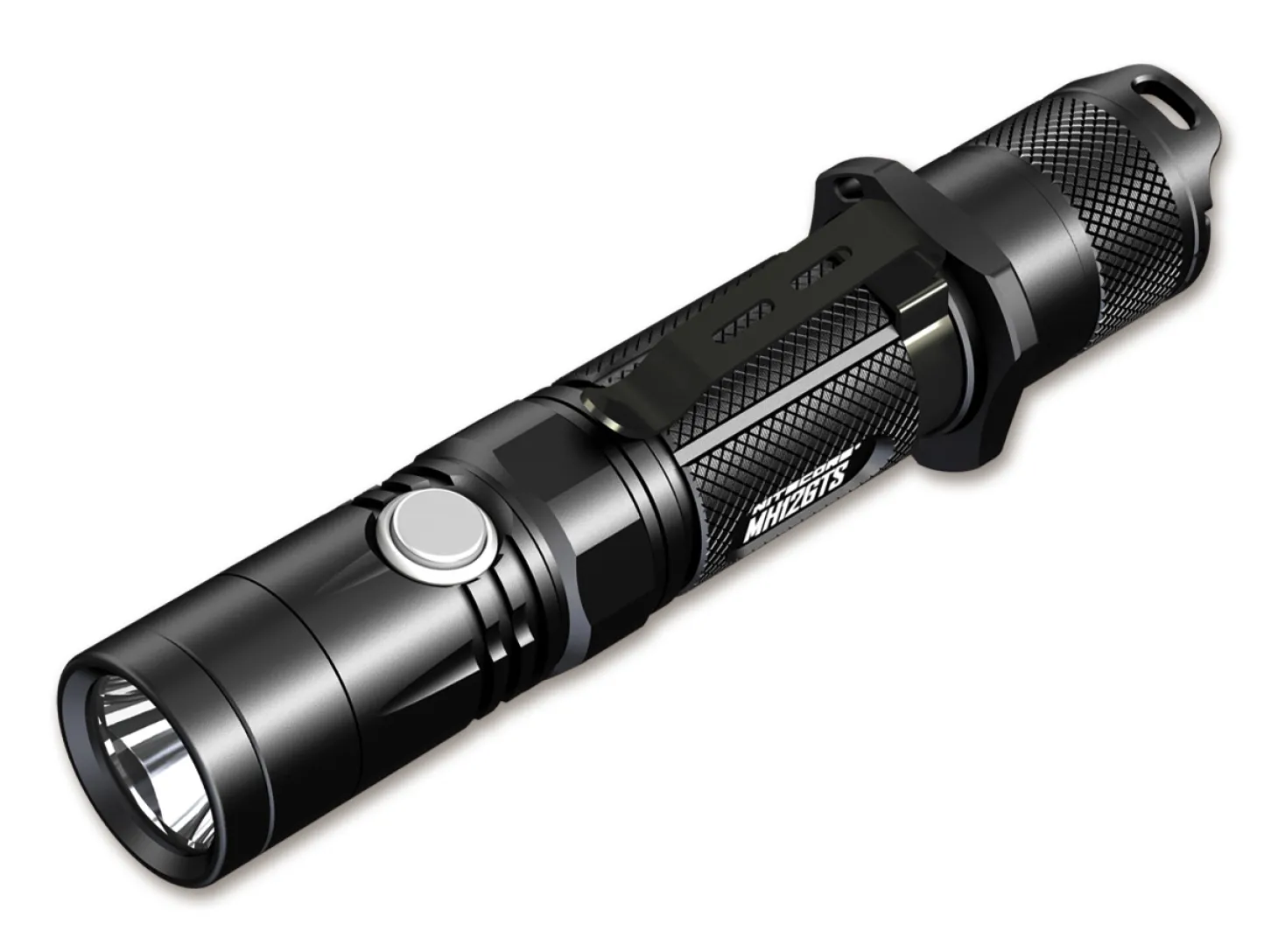 Mit der MH12GTS stößt Nitecore in den Höchstleistungsbereich für Lampen dieses Formats vor, denn mit 1800 Lumen maximaler Lichtleistung hebt sich die MH12GTS deutlich von den sonstigen Lampen dieser Größe ab. Der im Lieferumfang enthaltenen Hochstromakku Typ 18650 mit 8A Ausgangsstrom lässt sich über die im Lampenende neben dem An-Aus-Schalter positionierte USB-Buchse problemlos an jeder USB-Stromquelle aufladen. Zudem ist die USB-Buchse auch ohne Abdeckung wasserdicht (IPX8). Das doppelwandige Aluminiumgehäuse verspricht maximale Stabilität. Fünf Lichtstufen (1800/900/240/70/1 Lumen) sowie Stroboskop, SOS und Notblitz werden über den Seitenschalter gesteuert, der eine integrierte Kapazitätsanzeige besitzt. Alternativ kann die Taschenlampe auch mit einem Standard-Akku 18650 oder mit zwei Batterien CR123 genutzt werden, dann beträgt die Lichtleistung allerdings maximal 900 Lumen. Lieferung mit Holster, Clip, Tactical Ring, Lanyard, Ersatzdichtung, Ladekabel und Akku. Der Durchmesser der Taschenlampe beträgt 25,4 Millimeter.