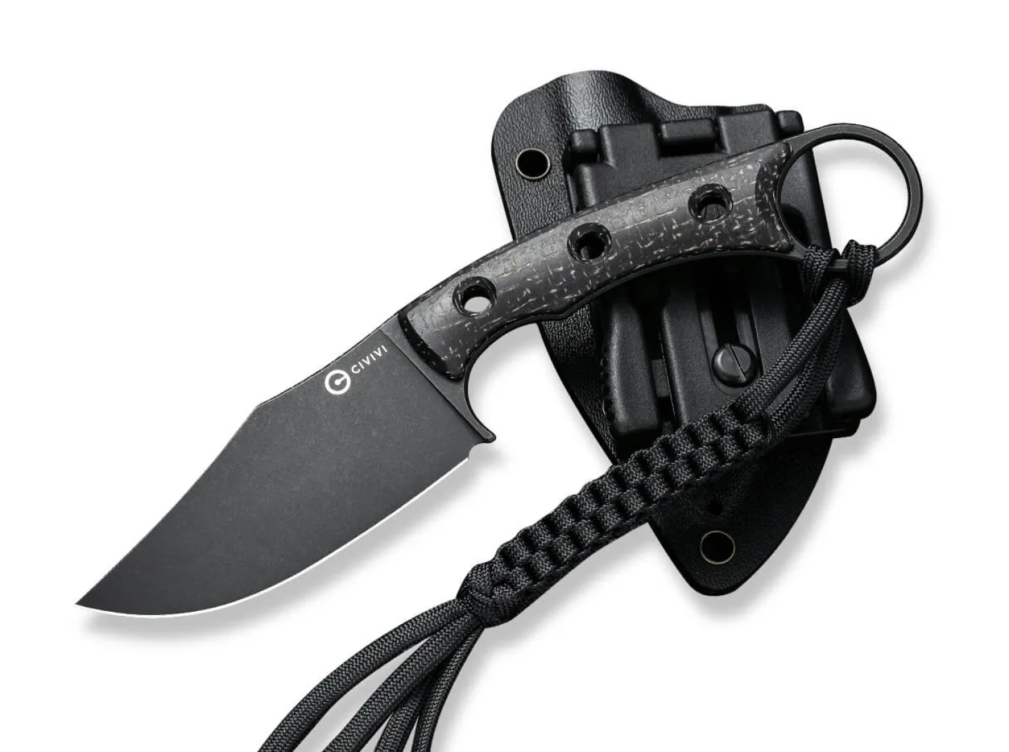 Urbaner Alltag und Outdoor vereint in einem Messer – das feststehende CIVIVI Midwatch schafft diesen anspruchsvollen Spagat als vielseitiges Messer im taktischen Karambit Look. Vom Öffnen von Verpackungen bis hin zum Schnitzen von Kleinholz meistert die Böhler N690 Klinge alle Aufgaben bravourös. Vollerlbauweise und Jimpings sorgen für die nötige Stabilität und Kontrolle beim Schneiden. Satten Halt verspricht der ballige und mit drei Hohlnieten versehene Griff aus schwarzem Micarta, während der für Karambitmesser typische Ring am Griffende für weitere Befestigungs- und Haltemöglichkeiten erlaubt. Lieferung mit passgenauer Kydexscheide und Lanyard.