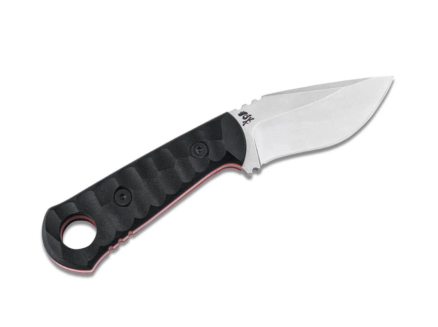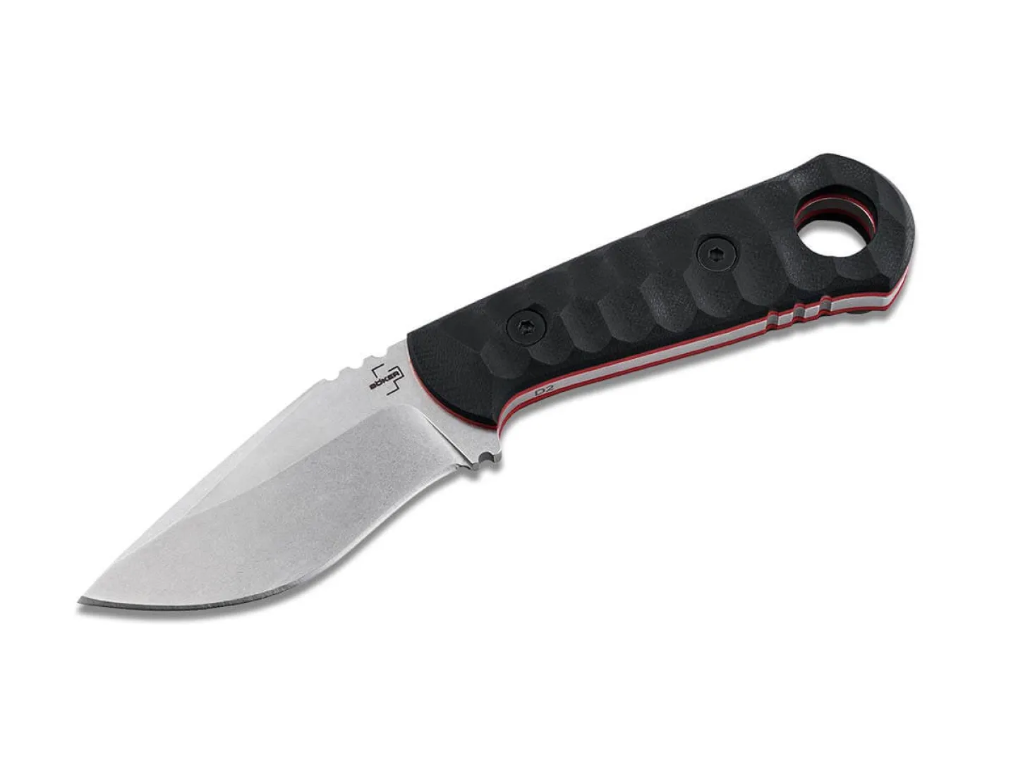 Konventionen? Vollkommen überbewertet! Schubladendenken? Völlig altmodisch! Zeitgeist ist die Summe jener Visionen, die in der Gegenwart aufkeimen, eine ganze Ära prägen und für die kreativen Köpfe dahinter längst vergangene Zukunft sind. Freigeist und Messermacher Kornel Kiss aus Ungarn wagt als Spezialist für Taktik- und Outdoormesser regelmäßig den Blick über den Tellerrand hinaus und vereint im feststehenden Böker Plus Mikri die Elemente eines praktischen EDC-Messers mit den Vorteilen einer Kukri Klinge, deren historischer Ursprung in Nepal liegt. Die typische Biegung und die bauchige Form wurden in der charakteristischen Klinge aus D2 dezent aufgegriffen und mit einer Modified-Droppoint Spitze auf die gestiegenen Anforderungen im Outdoor- und Bushcraft Segment abgestimmt. Das bedeutet ein Maximum an Stabilität, Vielseitigkeit und Performance. Vollerlbauweise, Jimpings sowie texturierte Griffschalen aus G10 unterstreichen den kompromisslosen Anspruch und liefern die nötige Arbeitssicherheit, wenn es darauf ankommt. Das intensive Stonewash-Finish der Klinge, die roten Liner unter den Griffschalen sowie die opulente Fangriemenöse haben längst ein neues Zeitalter eingeläutet. Lieferung mit knackig sitzender Kydexscheide und Gürteladapter.