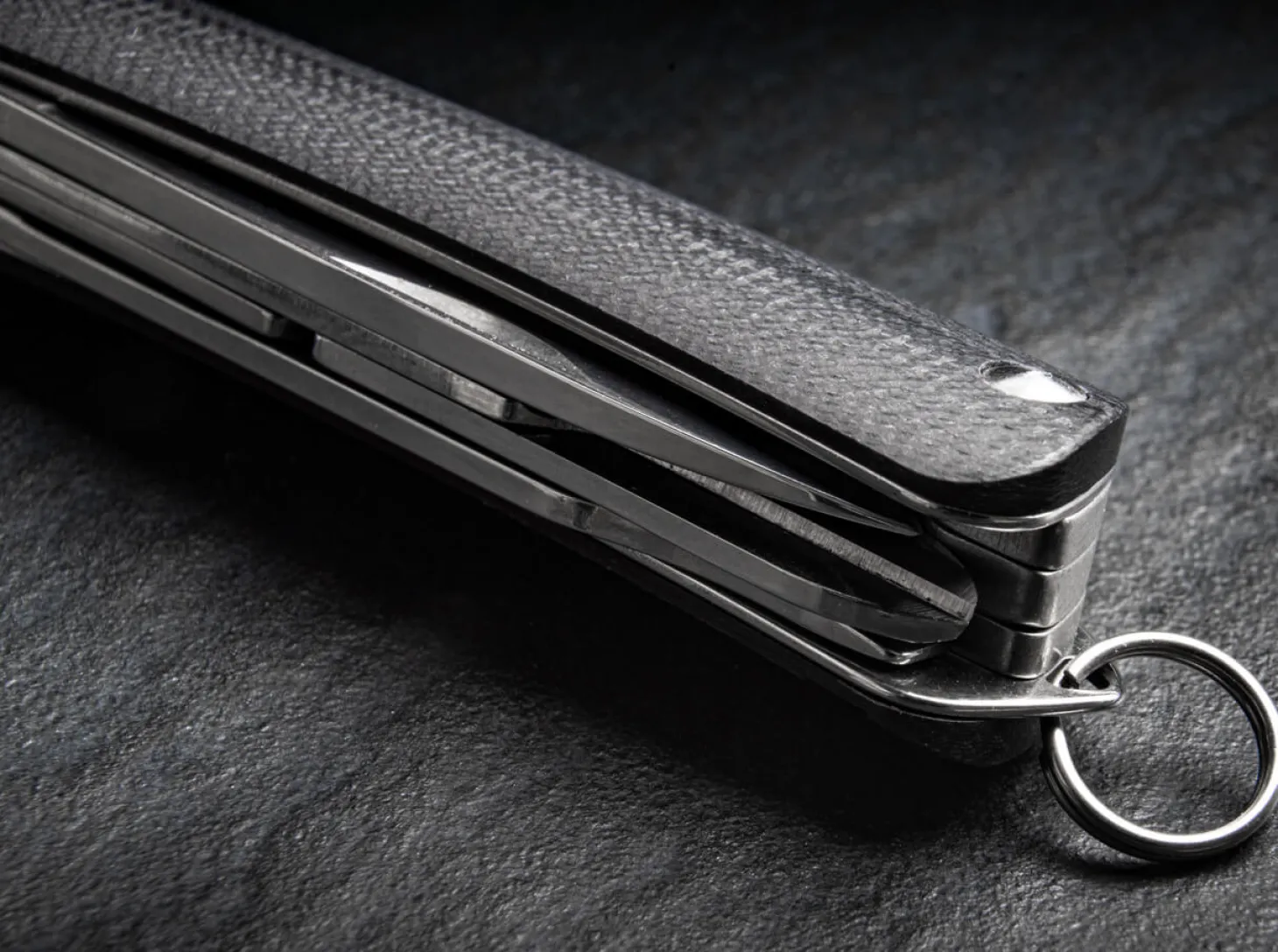 Mit 5,2 Zentimetern Klingenlänge ist das Böker Plus Tech Tool Mini deutlich vielseitiger, alltagstauglicher und effektiver als viele bekannte Schlüsselbundmesser. Es liegt jedoch immer noch absolut innerhalb des Größenbereichs, der auch für den Schlüsselbund prädestiniert ist. Die gleichen hochwertigen Ausstattungsmerkmale wie beim großen Bruder zeichnen auch das Tech Tool Mini aus: Polierte und hohlgeschliffene Klinge aus Sandvik 12C27, konturierte Griffschalen aus schwarzem G10 und ein verschraubter Griff. Eine feste Öse samt Schlüsselring gehört beim Tech Tool Mini zum Standard. Zusätzlich verfügt es über eine Schere und eine Multifunktionsklinge mit Schraubendreher, Gurtschneider und Flaschenöffner.