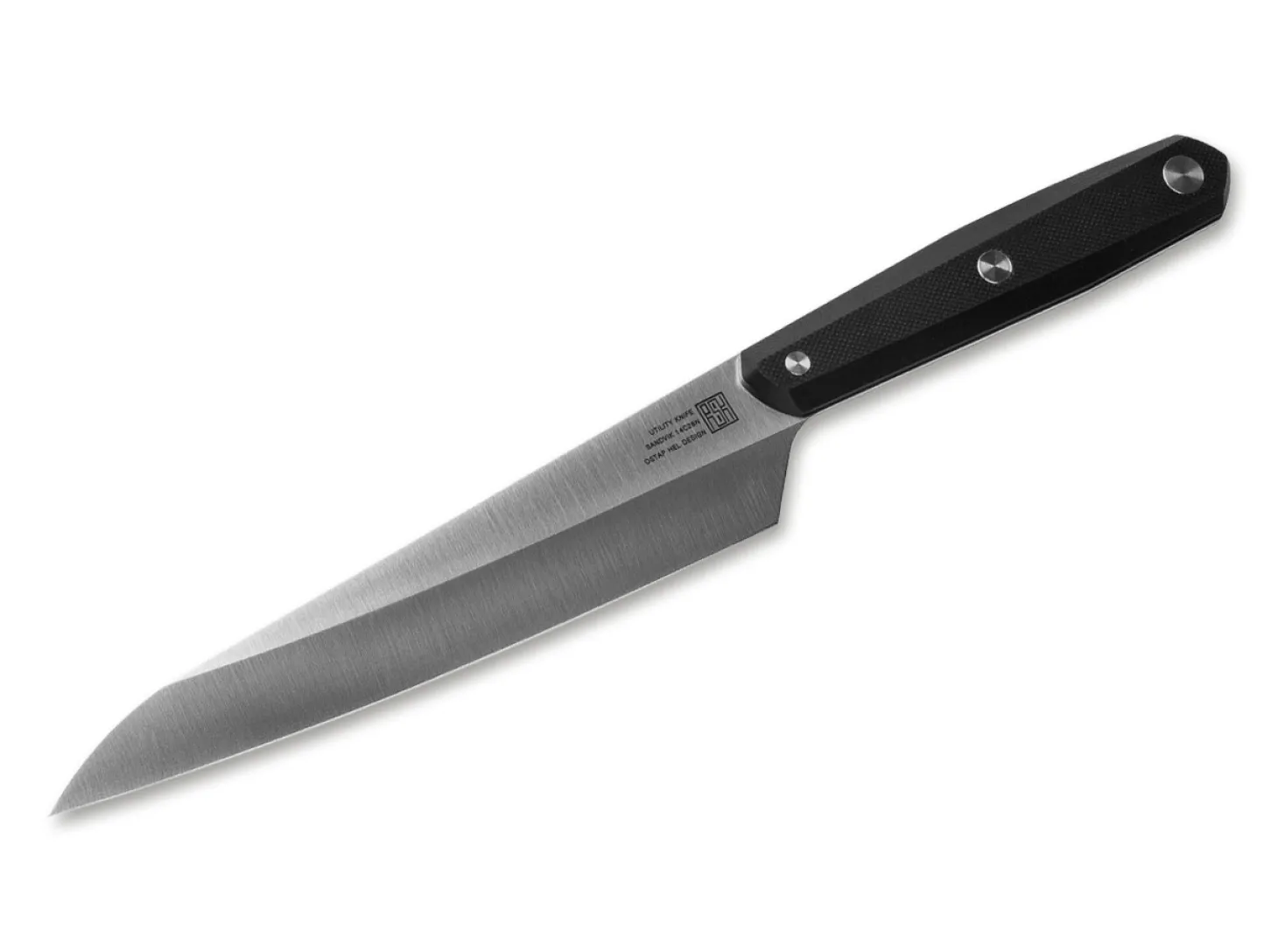 In Zusammenarbeit mit Ostap Hel hat Real Steel die Küchenmesserserie OHK entworfen, in der das Design von Ostap Hel von zentraler Bedeutung ist. Die Linienführung ist geradlinig und auf ein Minimum reduziert. Das Schaftdesign mit rundem Rücken verstärkt die Ästhetik dieser Serie. Der Klingenstahl 14C28N sorgt für eine fantastische Schärfe, Korrosionsbeständigkeit und einfaches Nachschärfen. Die CNC-gefertigten Griffe aus G10 mit starken, stoßfesten Nieten sind robust und liegen angenehm in der Hand.Das OHK Universalmesser kann für viele Dinge verwendet werden. Die kleinere Klinge ermöglicht ein präziseres Scheiden, vom Fettabtrag bis hin zum Beschneiden von Obst und Gemüse.