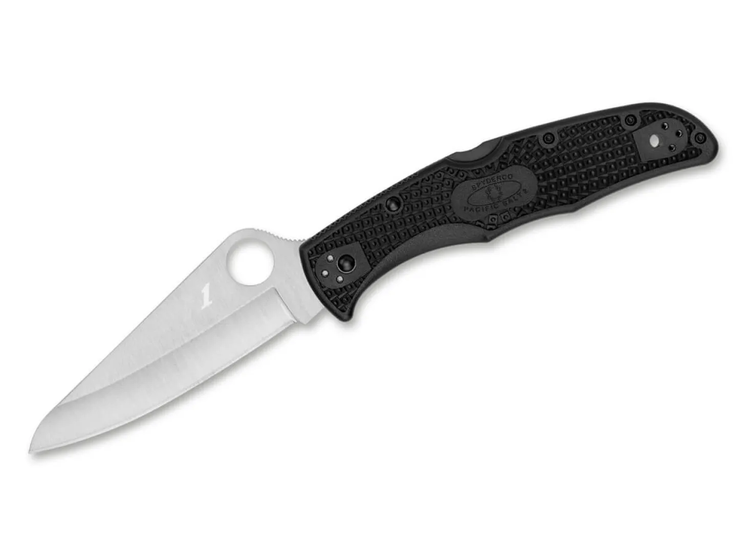 Das überarbeitete Spyderco Pacific Salt 2 ist ein speziell für den maritimen Einsatz entwickeltes Taschenmesser mit einer Klinge aus H1, das sogar dauerhaft im Salzwasser eingesetzt werden kann. Der in Japan entwickelte Stahl verbindet extreme Korrosionsbeständigkeit mit sehr guter Schnitthaltigkeit und weist eine Härte von 57 bis 58 HRC auf. Griffstruktur und Griffergonomie wurden im Vergleich zur Ursprungsversion deutlich verbesserst. Von den Abmessungen und dem Design ist das Taschenmesser mit dem Endura vergleichbar, hat jedoch eine etwas stärker gerundete Spitze. Auch die anderen Stahlteile des Messers wurden speziell behandelt um sie rostbeständiger zu machen. Der texturierte Griff aus FRN, der Backlock und das vergrößerte SpyderHole vereinfachen die Bedienung mit Handschuhen. Mit vierfach umsetzbarem Titanclip.