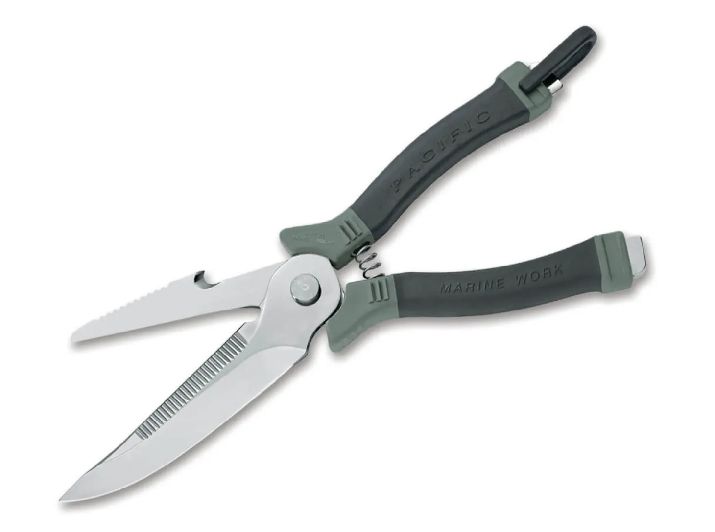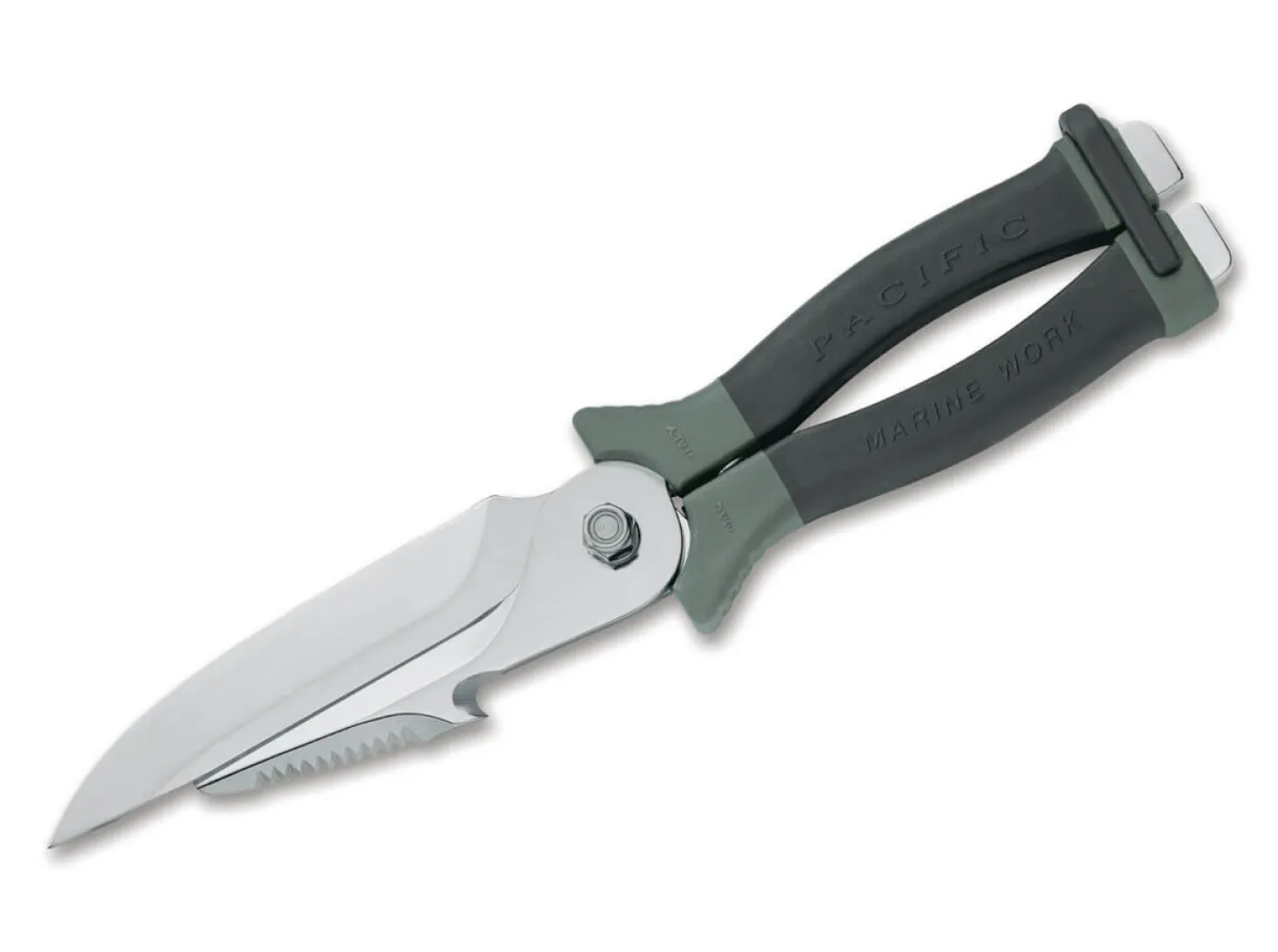 Die professionelle Taucherschere PMW (Pacific Marine Work) von MAC wird aus 4116 gefertigt, ist mit einem rutschfestem Griff aus TPE ausgestattet und verfügt zusätzlich über einen Wellenschliff. Lieferung mit ABS-Scheide mit Gummibändern für Beine oder Arme.