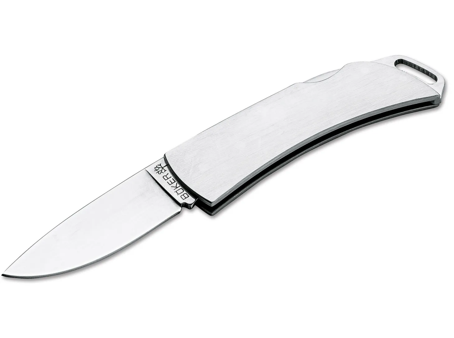 Unser Taschenzwerg, das Böker Pocket, ist seit jeher ein überaus beliebtes Modell für die sprichwörtliche Westentasche oder die Münztasche der Jeans. Die mit gerade einmal 5 mm Griffdicke besonders flach bauende Edelstahlversion ist nun mit einer vergrößerten Fangriemenöse versehen, die es ermöglicht, das Messer auch am Schlüsselbund zu tragen. So erhöht sich der Alltagsnutzen nochmals deutlich, und das Leichtgewicht ist immer dabei.