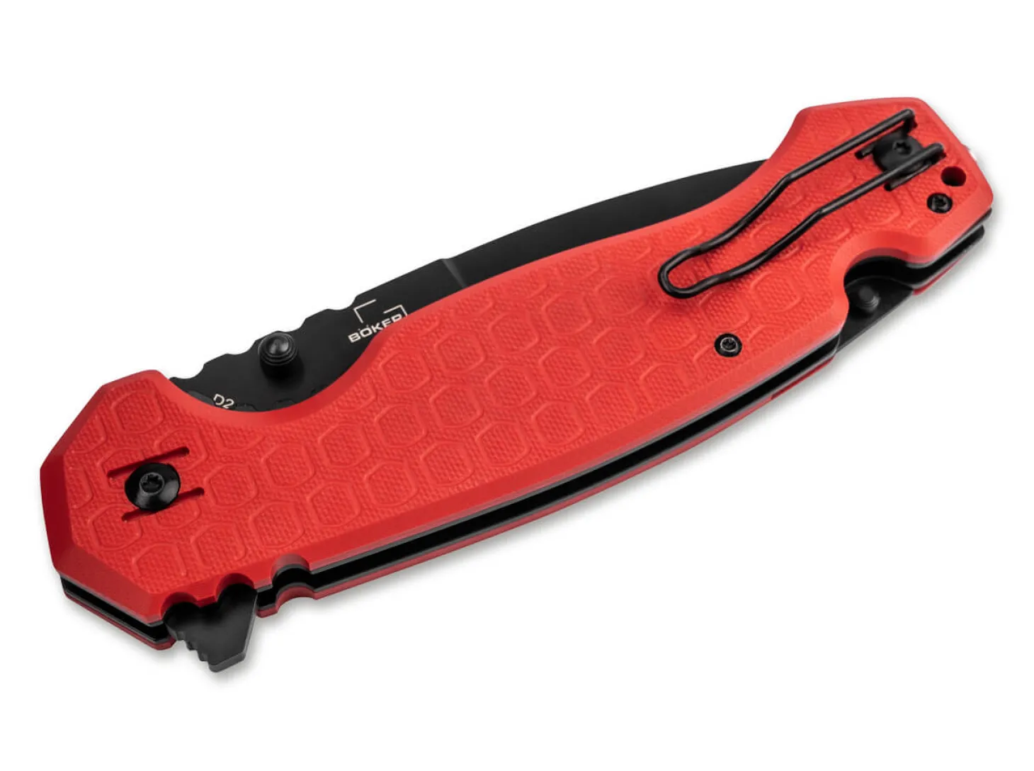Diese Messer sind mit einer durchschnittlichen Klingenlänge von 11,6 cm speziell für die Verwendung mit Handschuhen (auch schweren Hitzeschutzhandschuhen) dimensioniert. Die Griffschalen sind einheitlich aus hitzebeständigem G10 mit rutschfester Dönges-Wabenstruktur versehen. Sämtliche Messer besitzen einen 4-fach umsetzbaren Draht-Clip (für die Trageweisen Tip-Up, Tip-Down r/l), Klingen aus schnitthaltigem D2 mit kugelgelagerter Achse, einer Verzahnung an der Klingenbasis für faseriges Material, einen versenkbaren Gurtschneider sowie einen Glasbrecher.Auch in der Professional-Serie ist das Modell für Brandbekämpfer mit einer universell einsetzbaren Spearpoint-Klinge ausgestattet, die wahlweise per Fingerflipper oder Daumen-Pin geöffnet werden kann. Die Dimensionen sind hier jedoch größer als in der Basic-Linie und der Gurtschneider ist im Griff versenkbar. Die mit Dönges-Wabenstruktur gefrästen Griffschalen sind aus rotem G10.