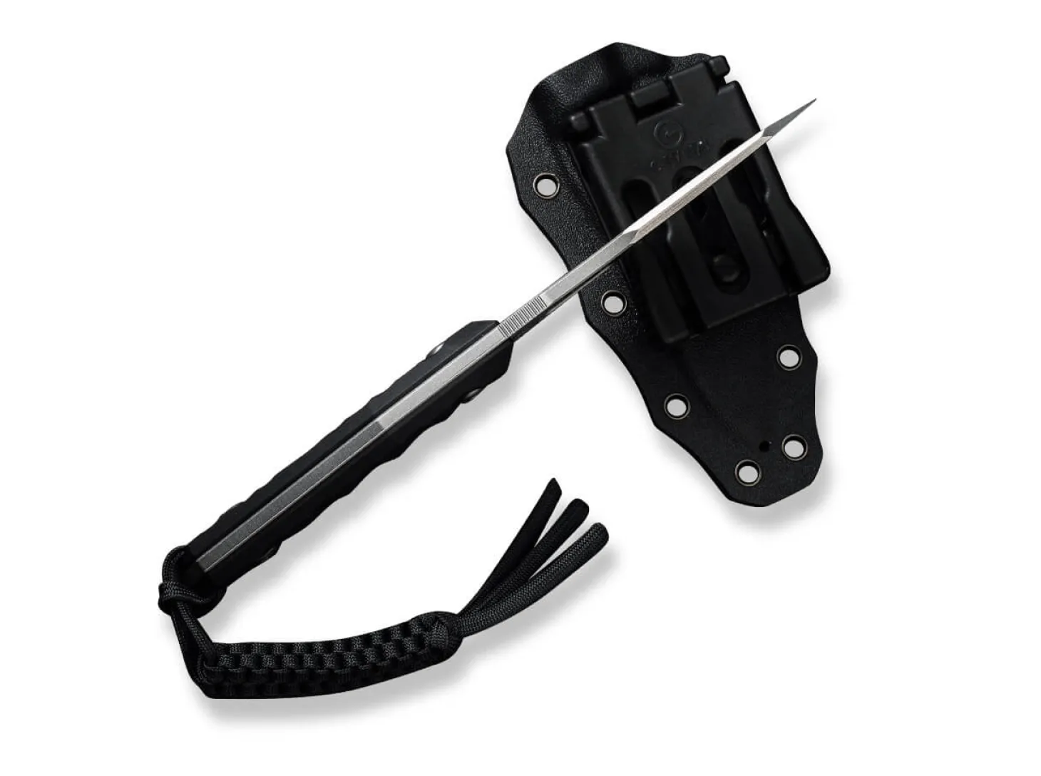 Hartgesottene Outdoorfans können auf die Rückendeckung des CIVIVI Propugnator zählen. Das feststehende Messer mit Reverse-Tanto Klinge aus D2 meistert anspruchsvolle Schneid- und Schnitzarbeiten spielend. Für eine hohe Arbeitssicherheit sorgen Jimpings am Klingenrücken sowie der Fingerschutz. Darüber hinaus wartet das in Vollerlbauweise gefertigte Outdoormesser mit ergonomischen Griffschalen aus schwarzem G10 samt rutschhemmenden Textur auf. Die dekorative Hohlkehle in der Klinge unterstreicht den kernigen Charakter des Propugnator. Lieferung mit passgenauer Kydexscheide, Gürtelclip und Lanyard.