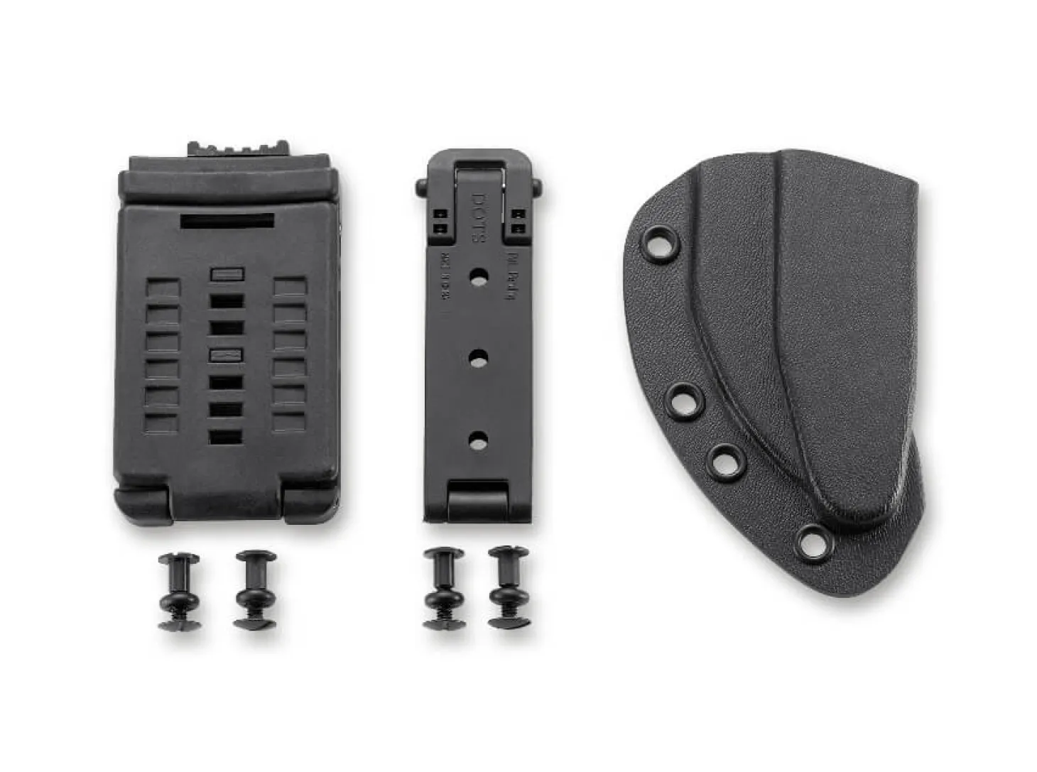Kydexscheide für das CRKT Provoke. Die Lieferung erfolgt mit zwei unterschiedlichen Befestigungsclips bzw. Gürteladaptern, für eine Vielzahl unterschiedlicher Trageoptionen.